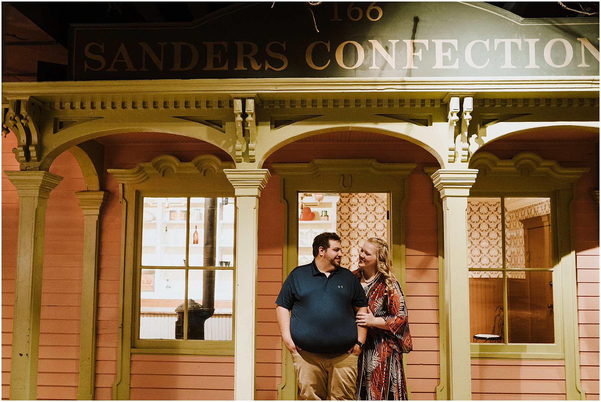 Fall is always my busiest time for engagement sessions and I can’t wait to share all of them with you! This Detroit Historical Museum engagement session with Keri and Darin was so fun! I am a huge history buff (I minored in it in college) so when Keri asked if I though the Detroit Historical Museum would be a good place for part of their session, I was so excited! Darin is actually a docent there and though I had visited before, it was fun to hear some facts from him as we did the session.
