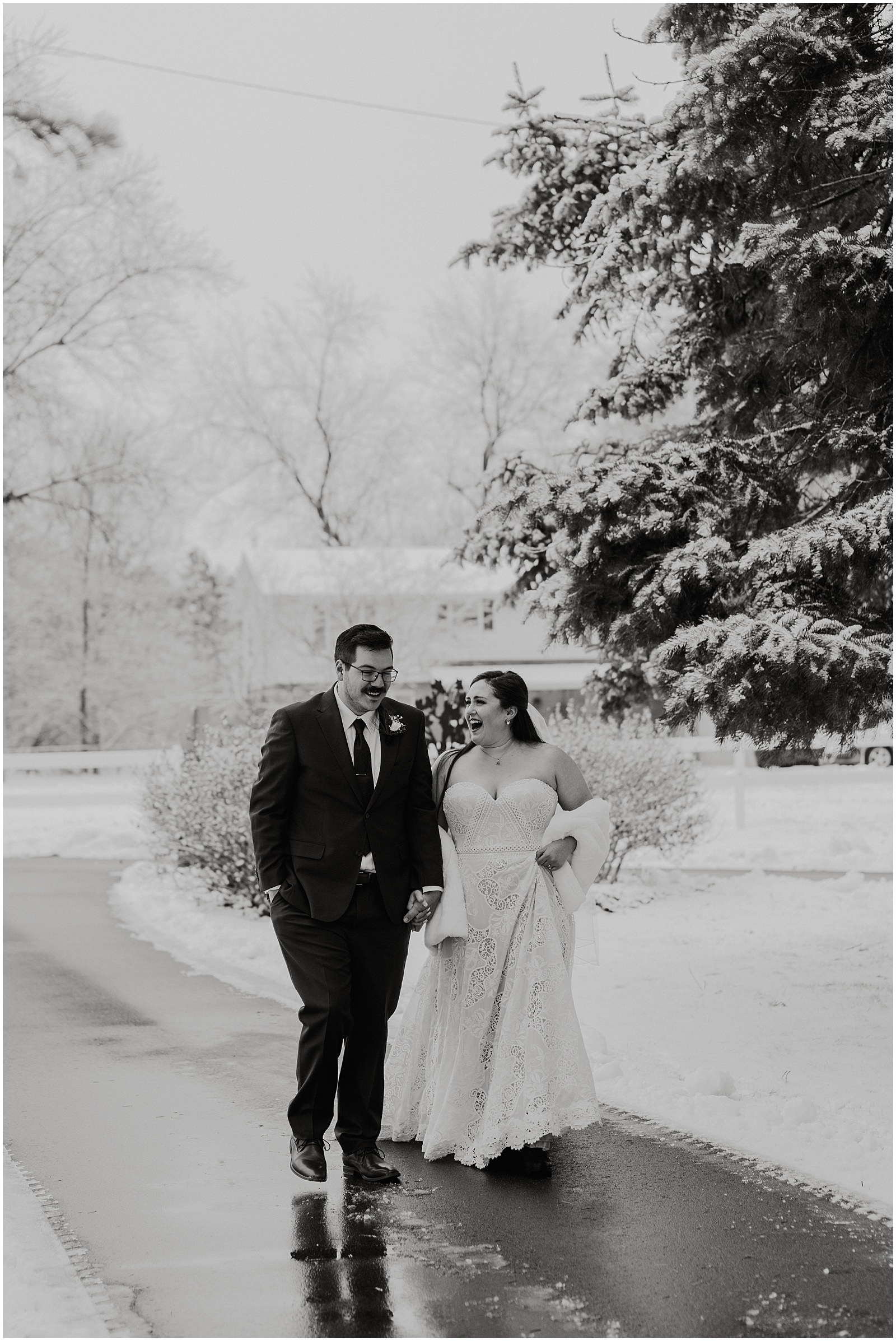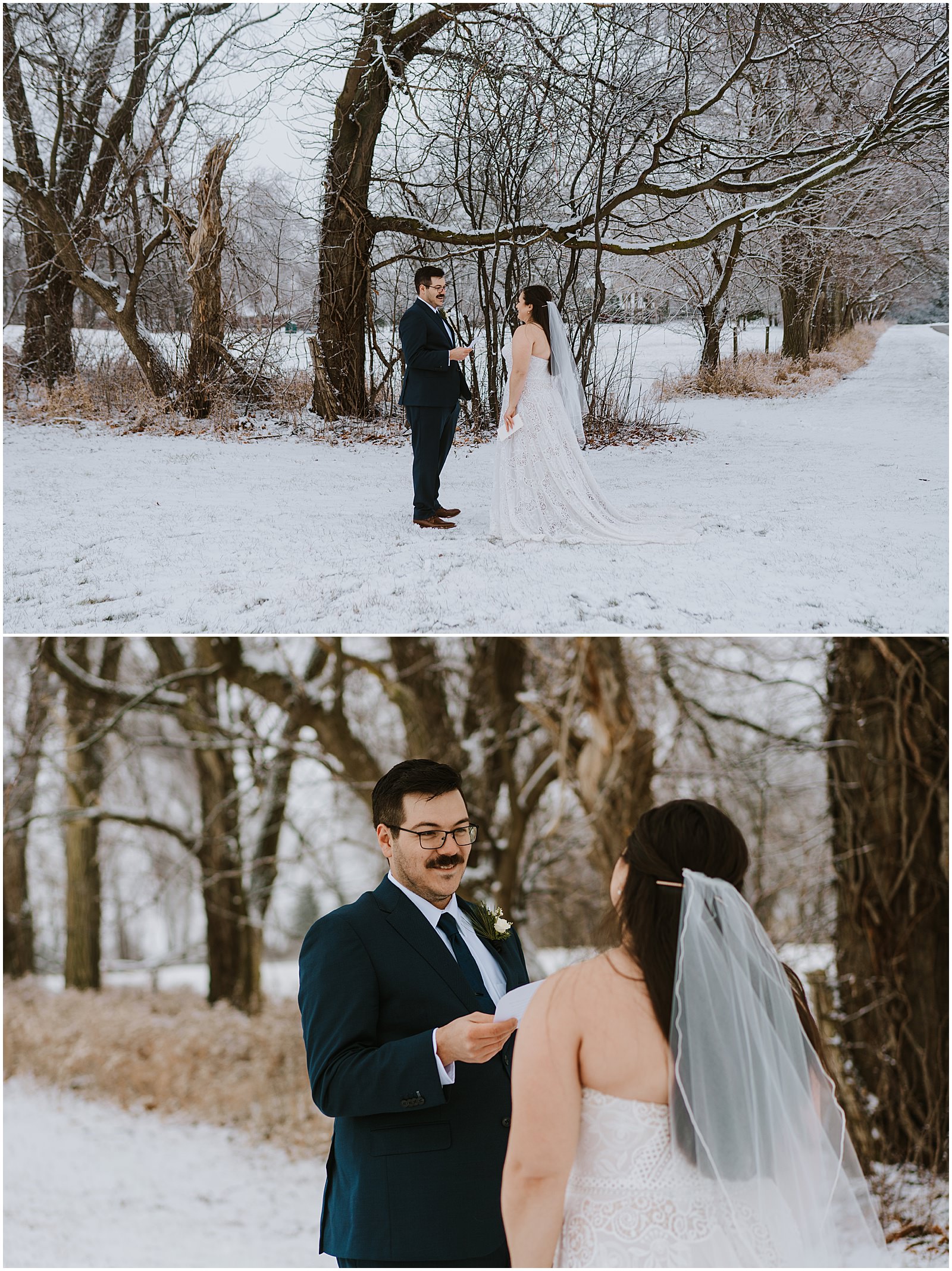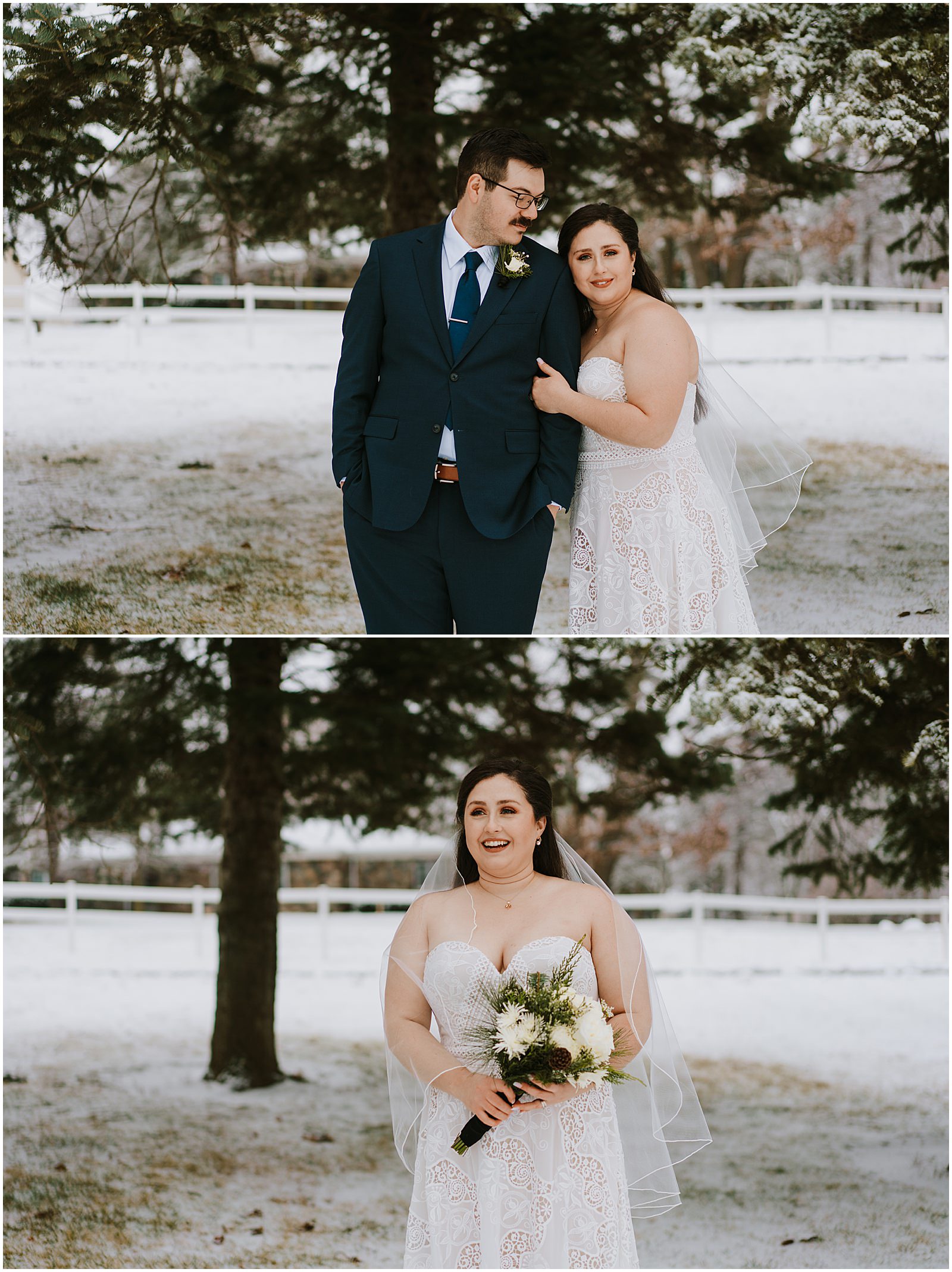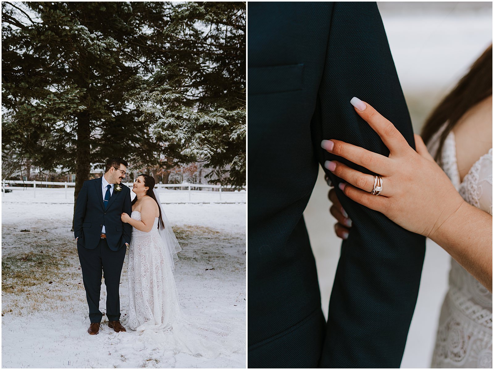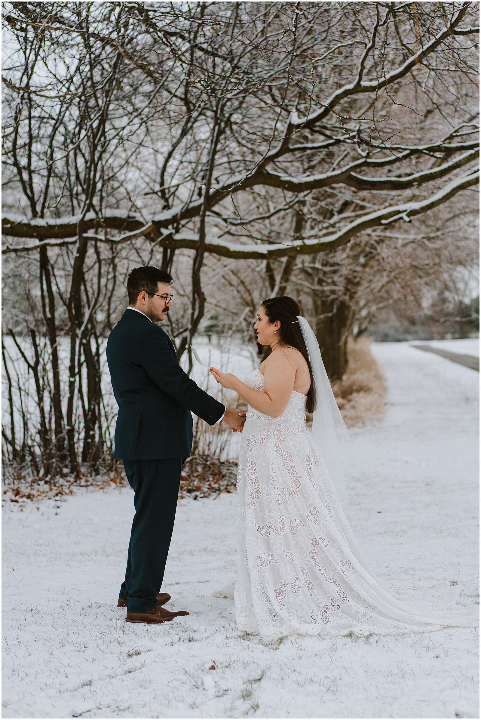 We were lucky to have a dusting of snow that morning which made the portraits all the more magical. No wedding party, under 30 people in attendance, it was the perfect way to celebrate in a low-key way. Winter is so underrated and I understand why people avoid it but when you get beautiful snow like this, it just makes all the difference.
