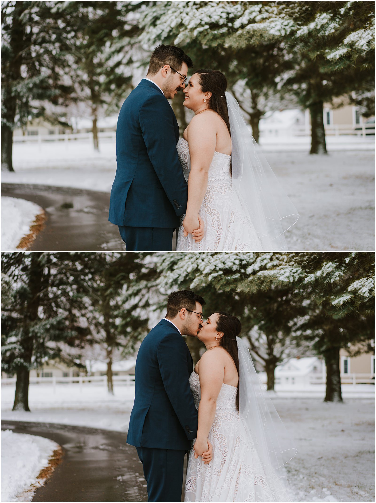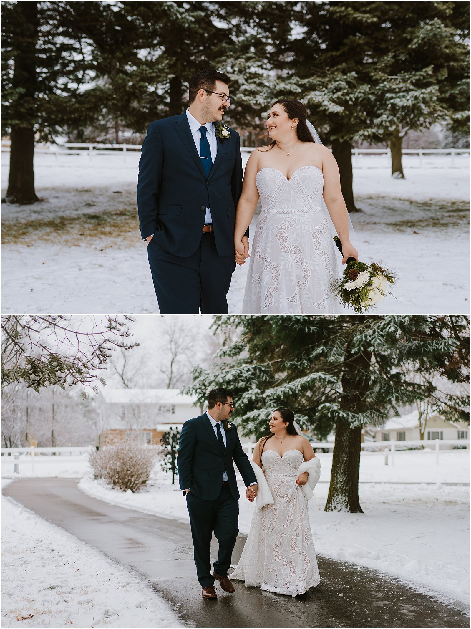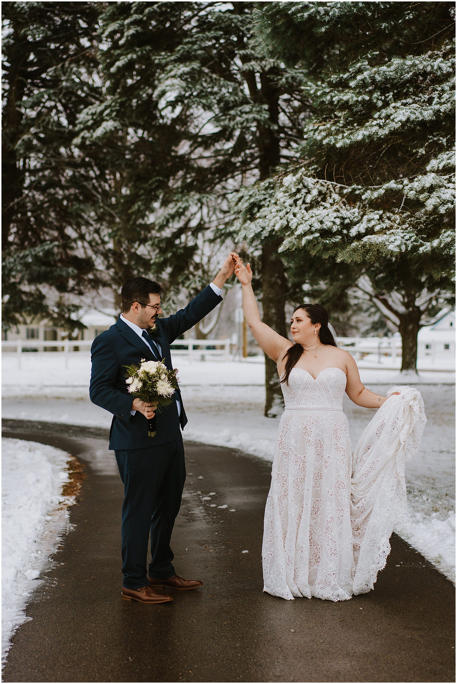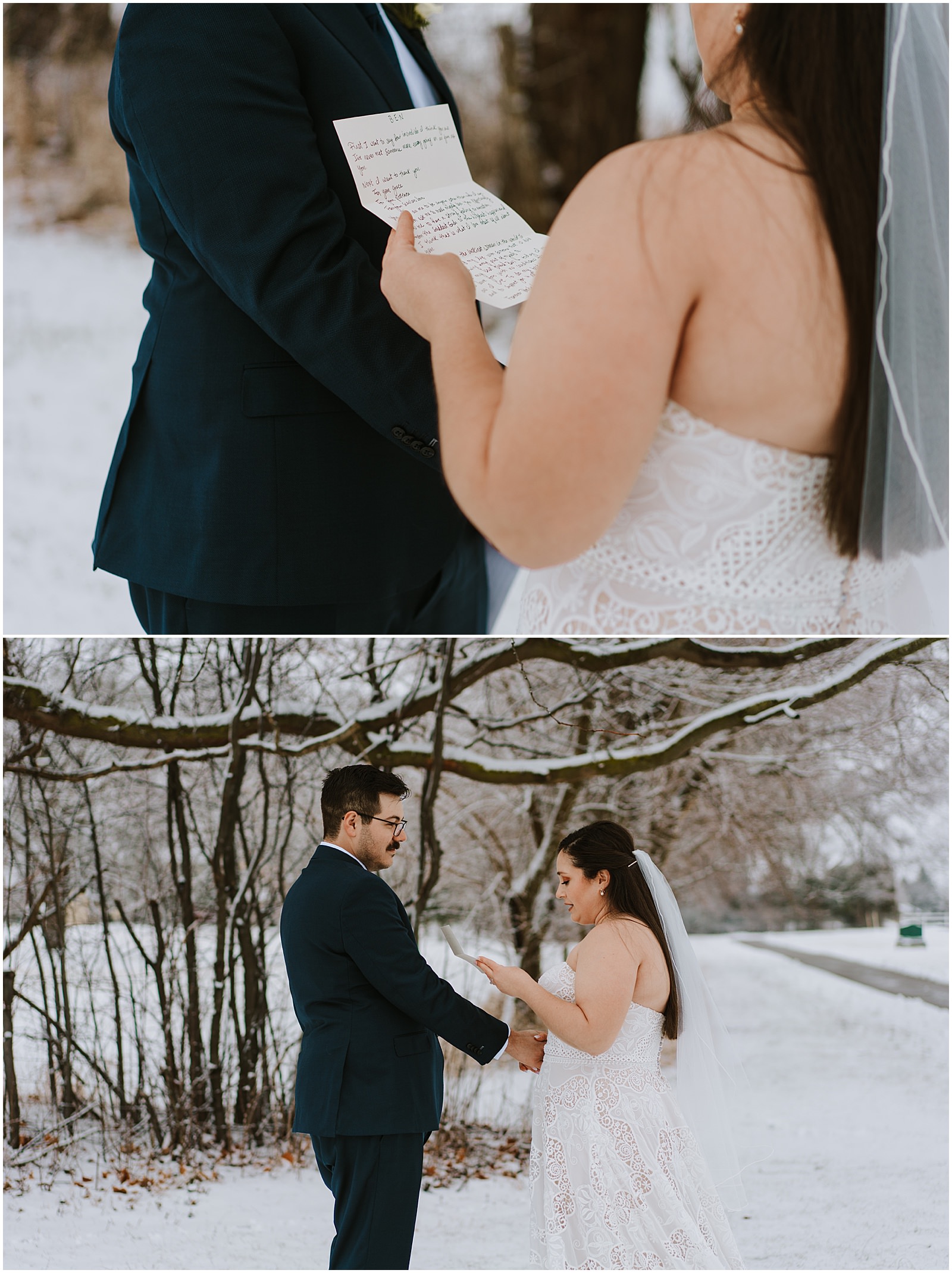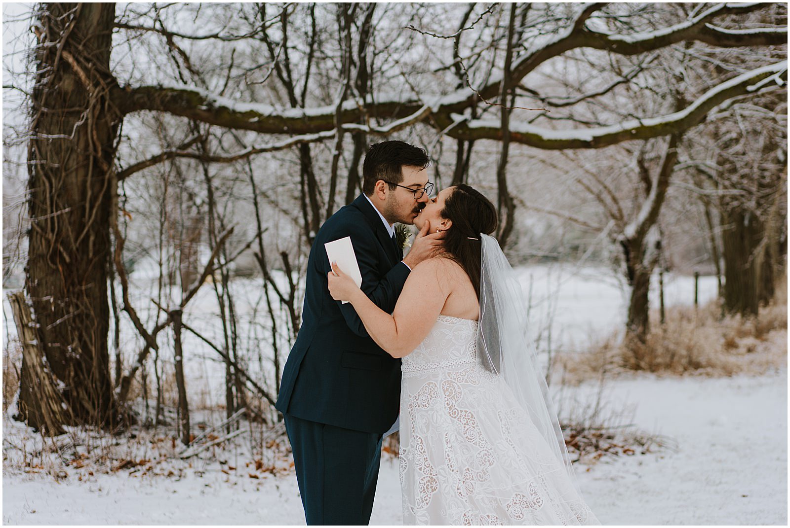 We were lucky to have a dusting of snow that morning which made the portraits all the more magical. No wedding party, under 30 people in attendance, it was the perfect way to celebrate in a low-key way. Winter is so underrated and I understand why people avoid it but when you get beautiful snow like this, it just makes all the difference.