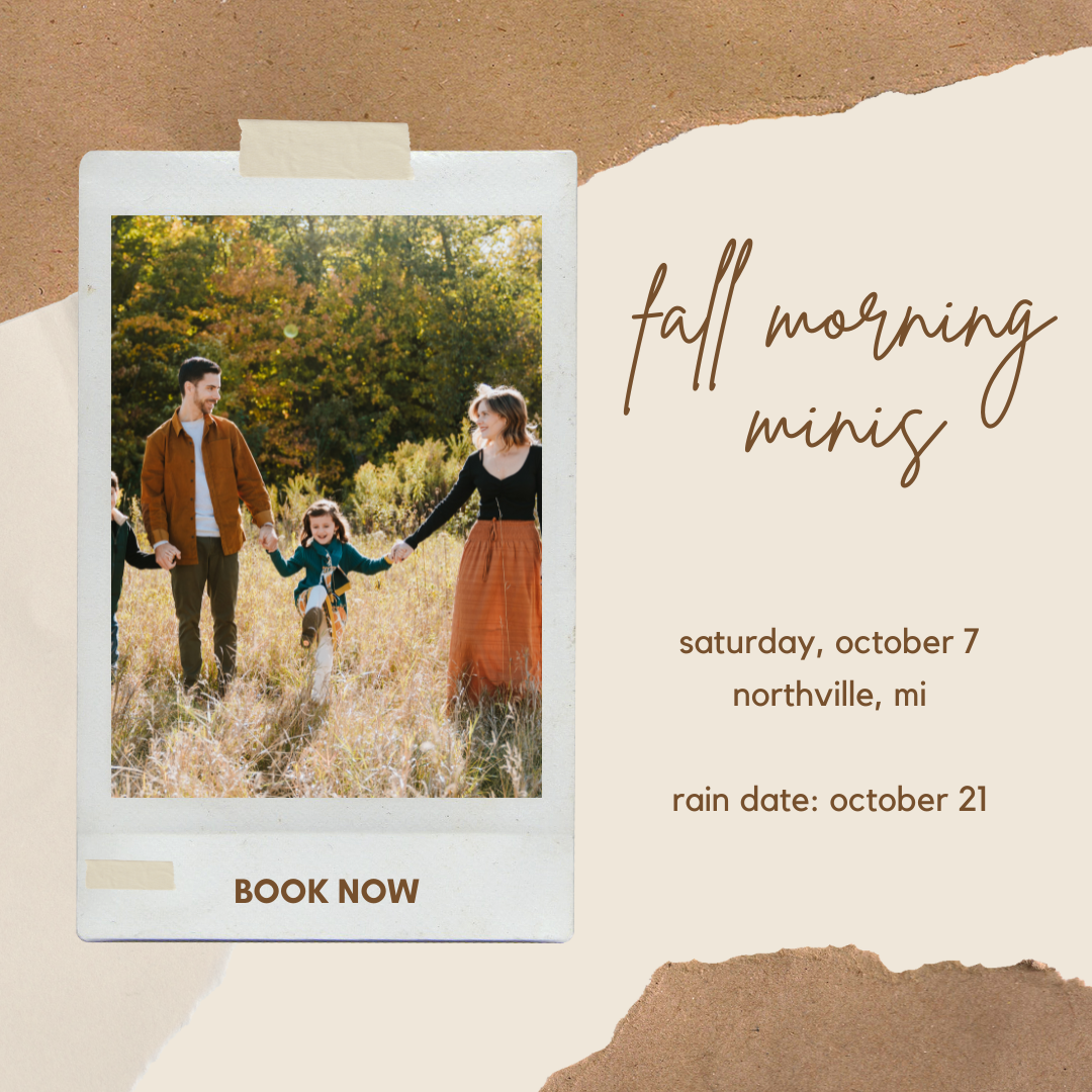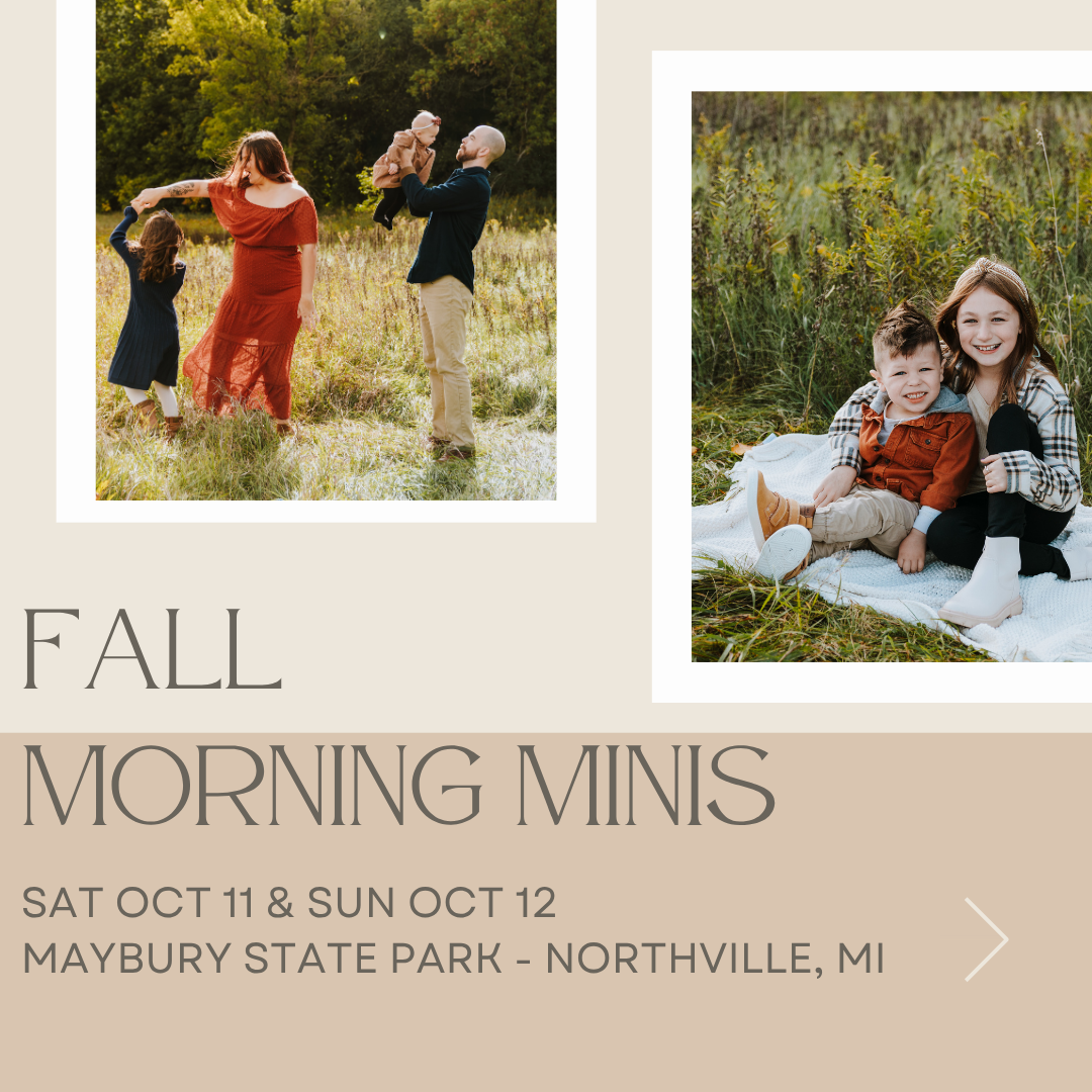 Mini sessions are fast-paced, scheduled back-to-back at a pre-selected date and location. Different from family sessions, they are meant to give a quicker experience rather than one specifically tailored to your family. Everyone is welcome at mini sessions: couples, maternity, kids, families, and pets (leashed please!). I offer mini sessions throughout the year – usually always once in the summer, fall and holiday time. I offer a variety of packages to work with a variety of budgets.