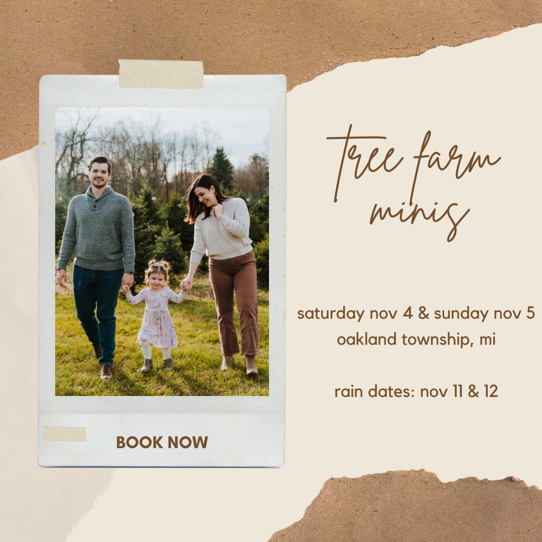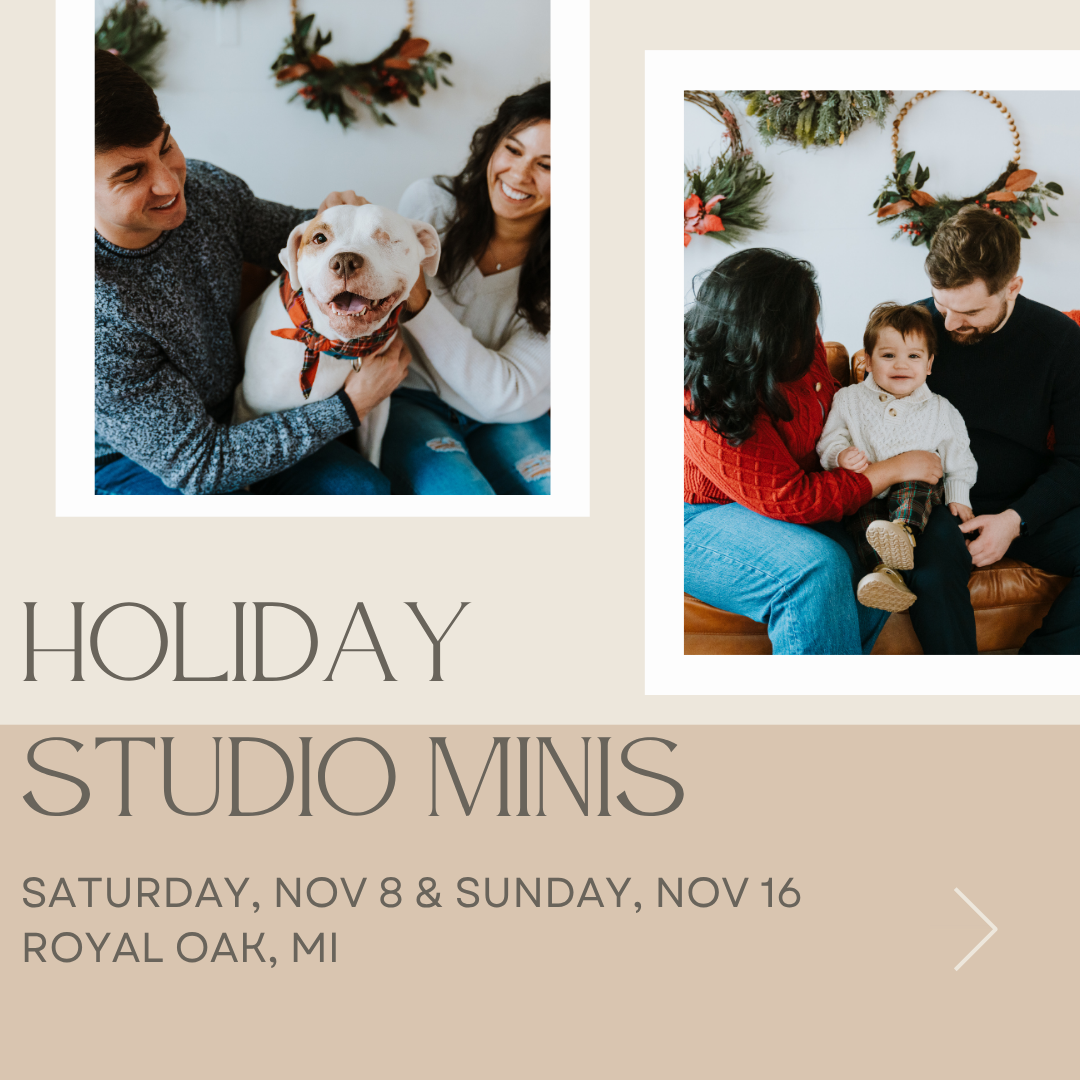A mini session is much shorter and meant to be more “quick and dirty,” meaning less variety in images and poses. They are meant to be for quick updates to your family photos, headshots, holiday card photos, etc. You’ll get a limited amount of digitals. Minis are great if you’d like to try me out!