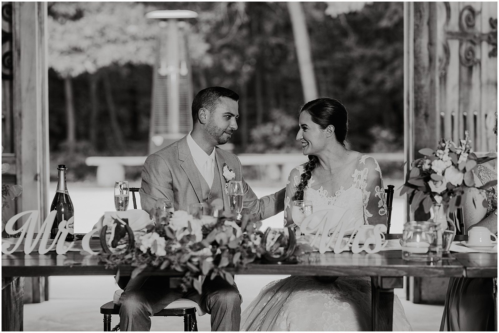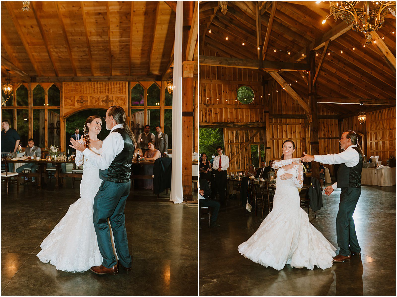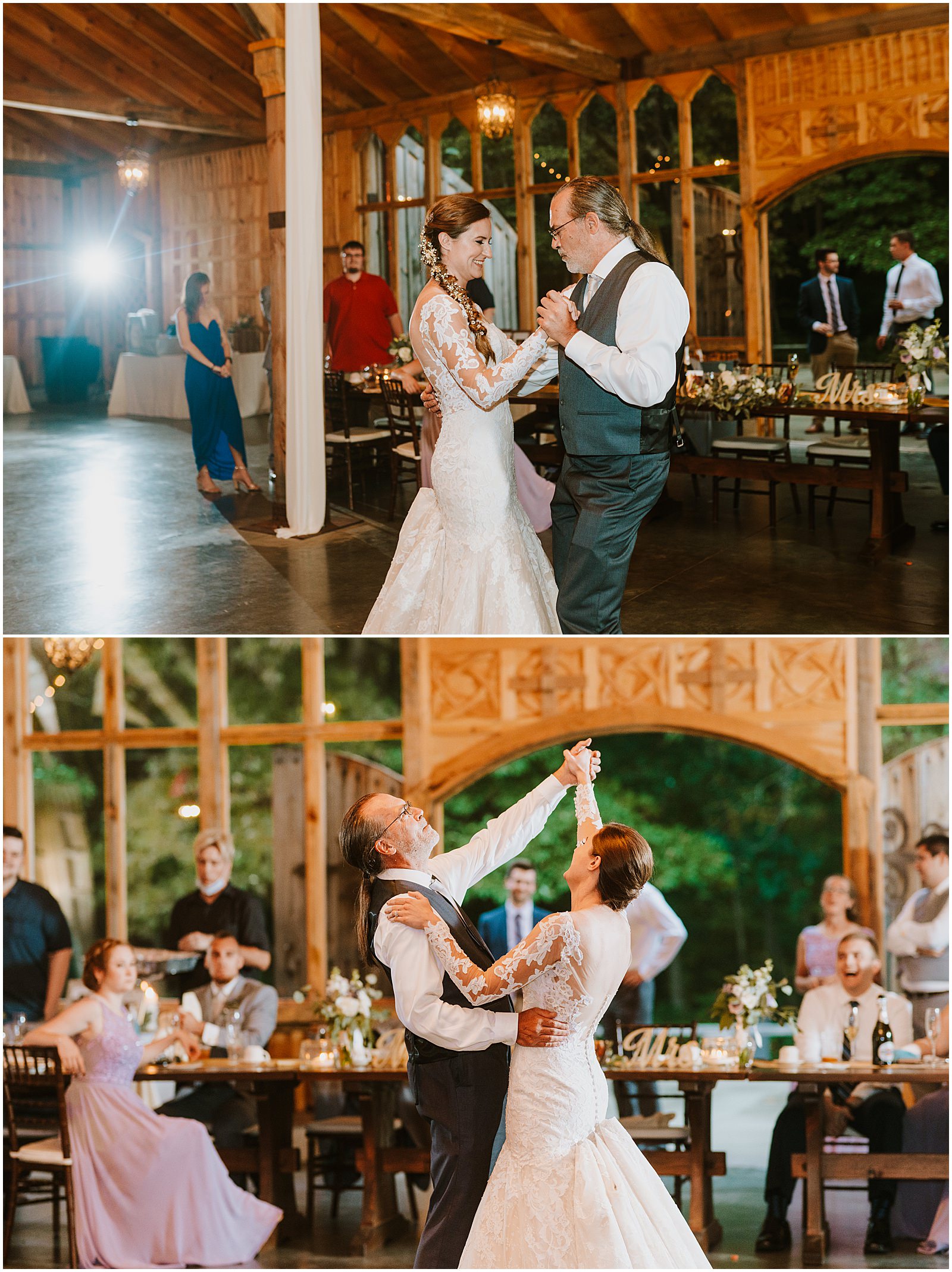 After the ceremony, we headed to the reception venue. This Odin’s Owl wedding warded off the rain until we were safely inside the custom-made barn. I loved the interior of Odin’s Owl! Such a beautiful property and unlike any other barn I’ve visited.