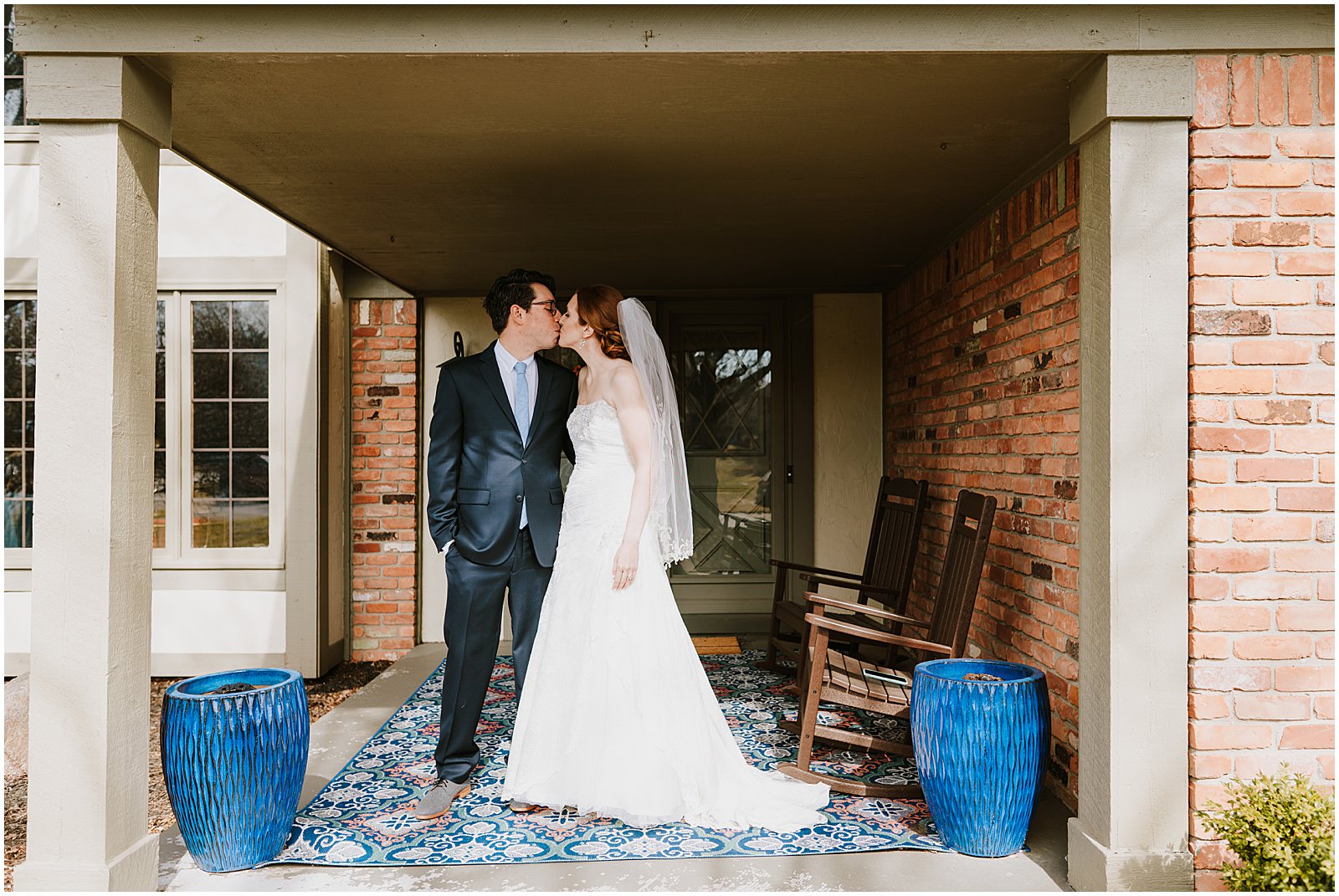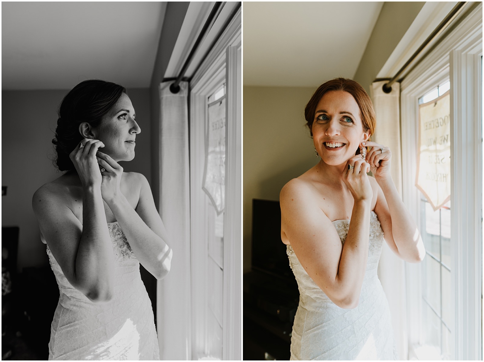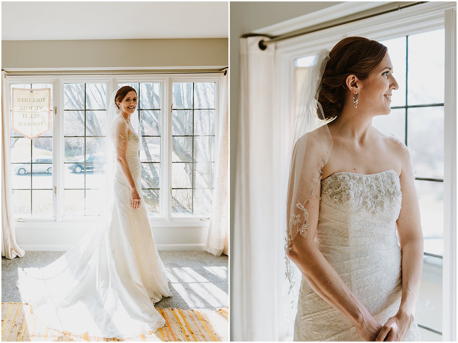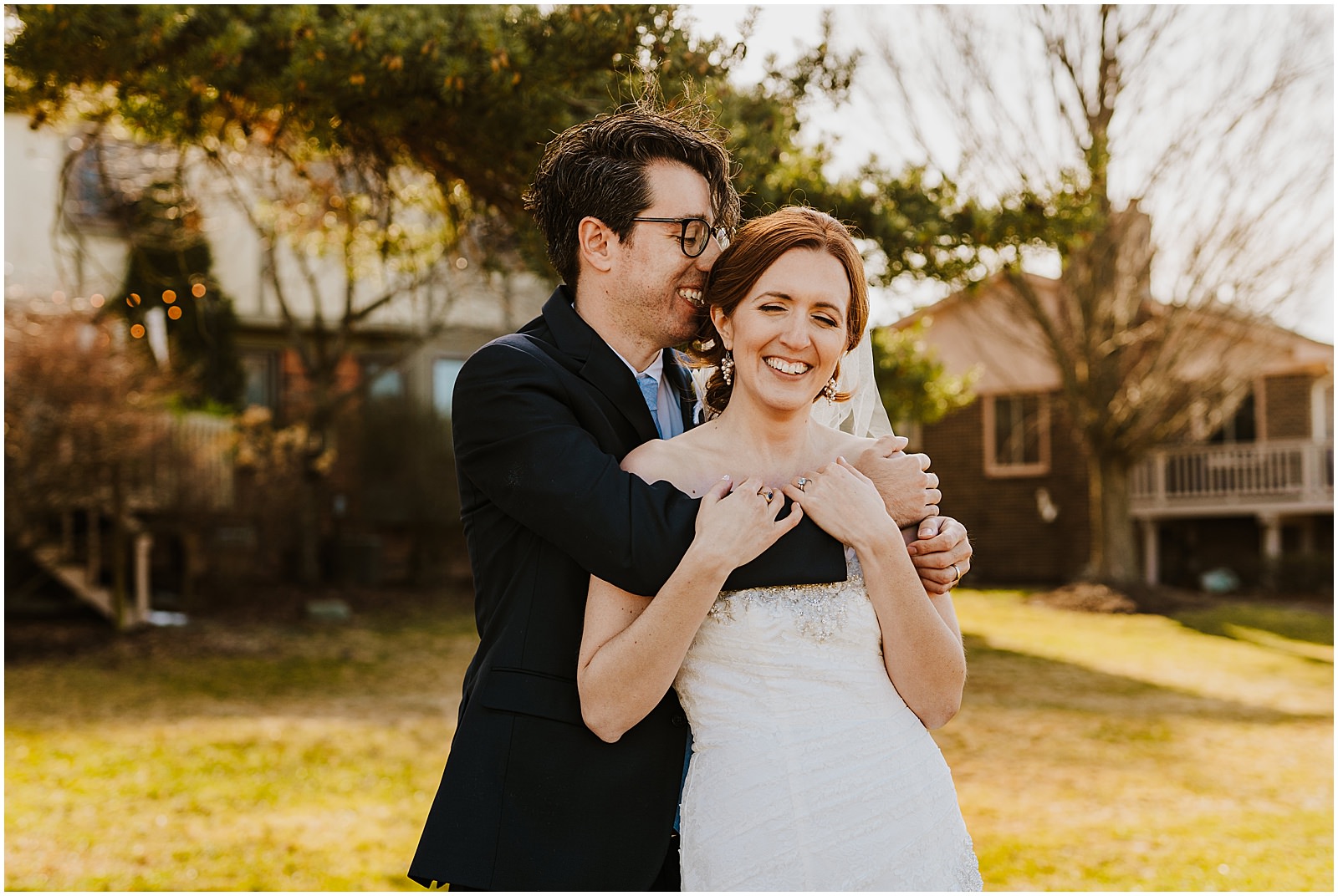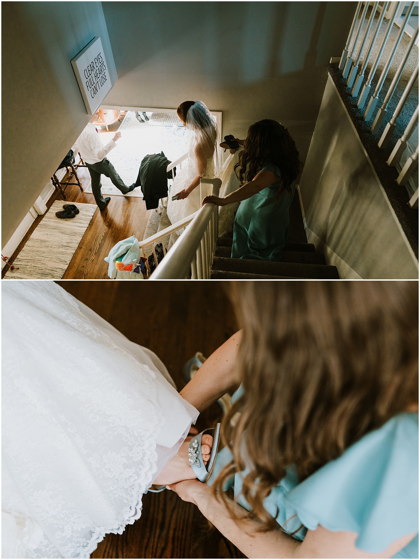 When I first spoke to Taylor and Rachel, it felt like I was talking to two friends. They are super down to earth people with pithy senses of humor and great style. They got ready in the house they purchased together and said their vows right on their back deck. They were incredibly lucky with the weather for a spring backyard wedding – sunny and warm for March!