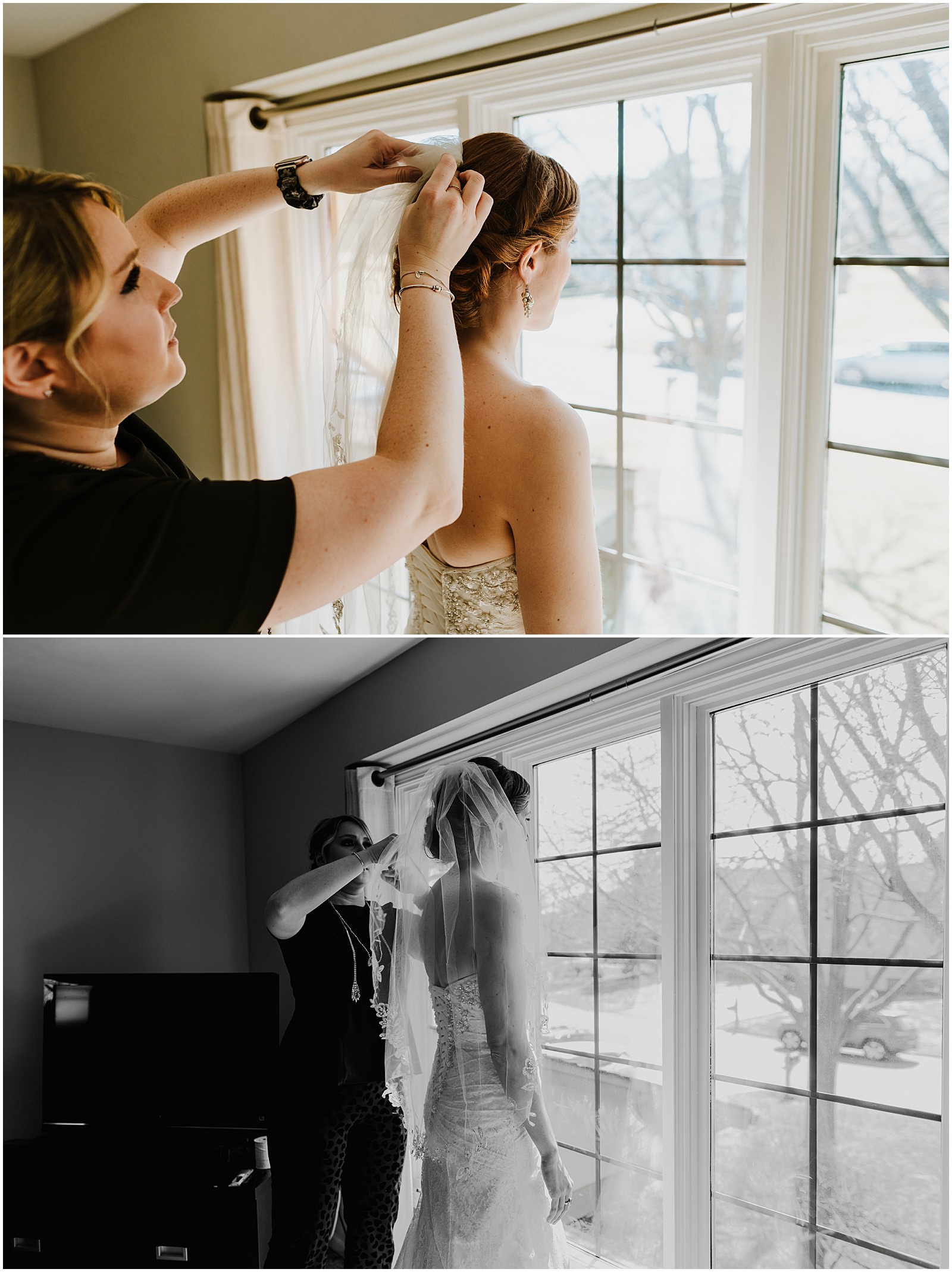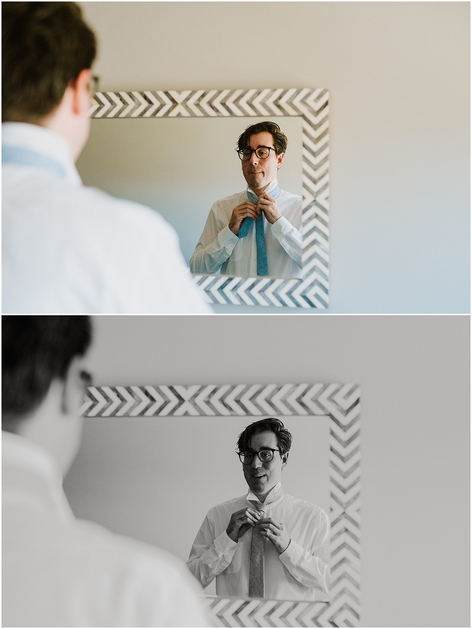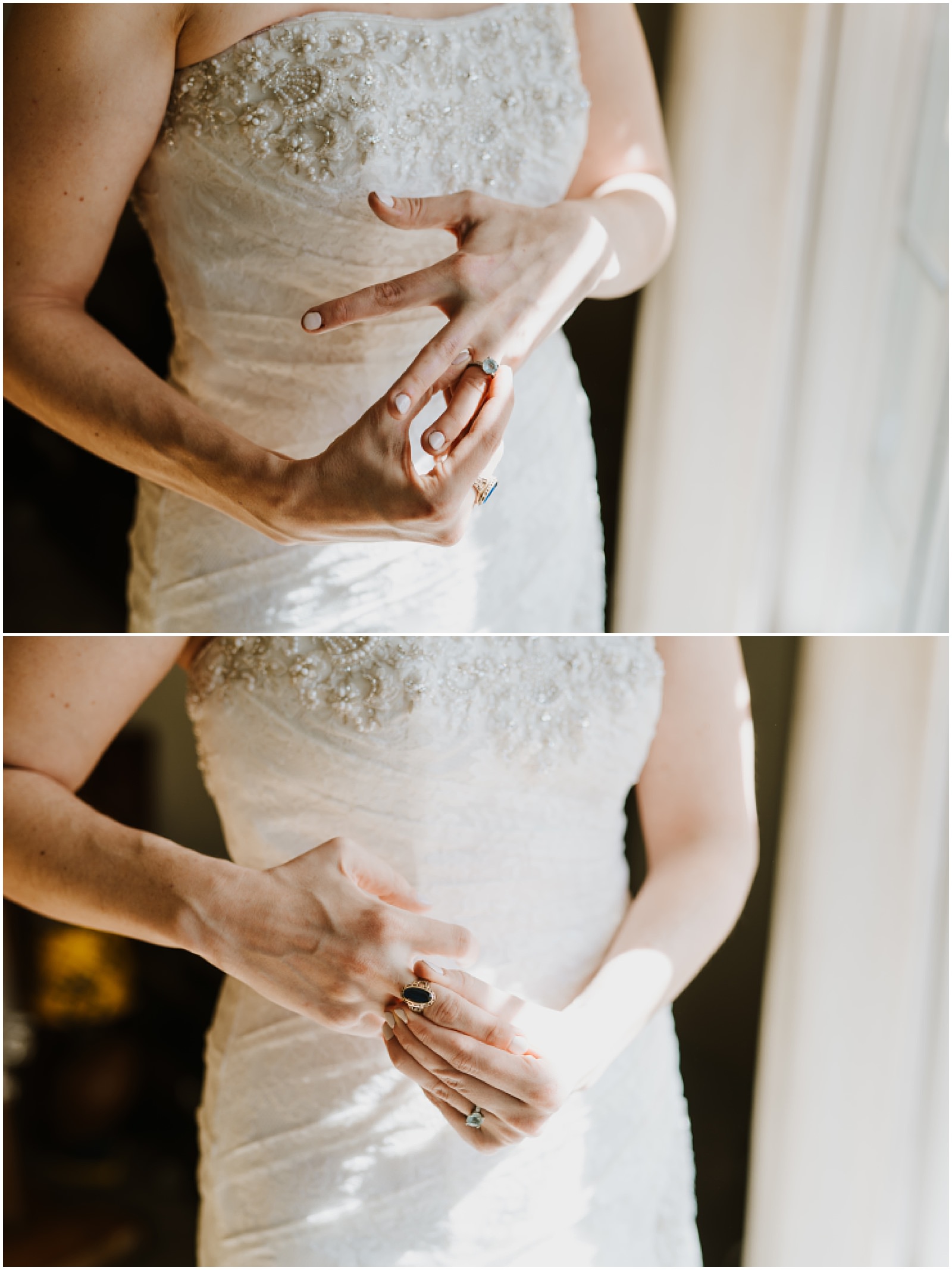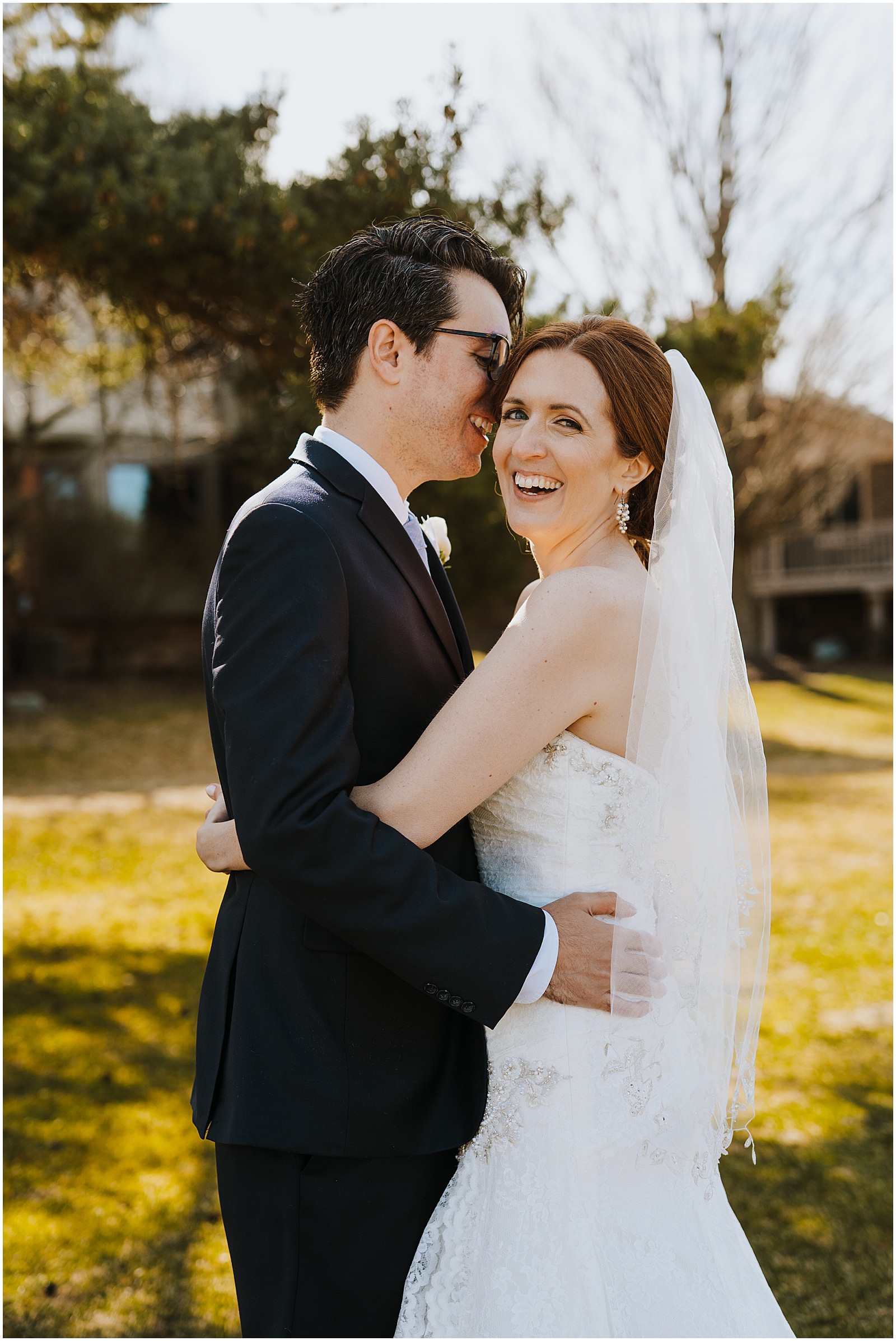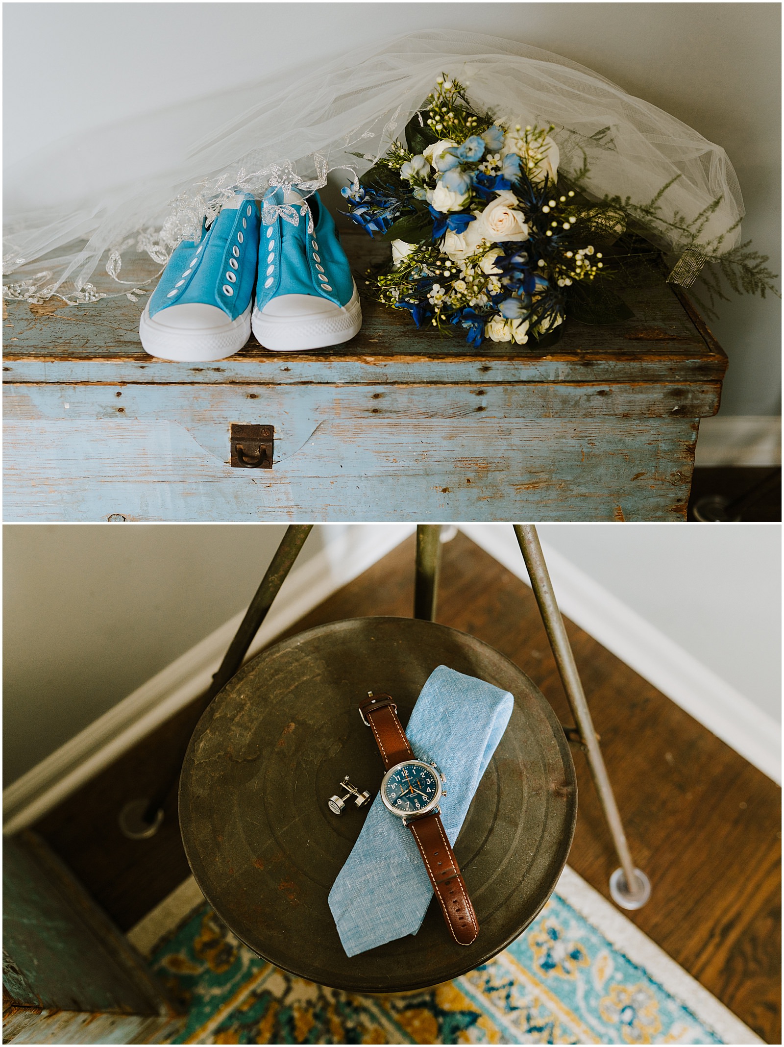 When I first spoke to Taylor and Rachel, it felt like I was talking to two friends. They are super down to earth people with pithy senses of humor and great style. They got ready in the house they purchased together and said their vows right on their back deck. They were incredibly lucky with the weather for a spring backyard wedding – sunny and warm for March!