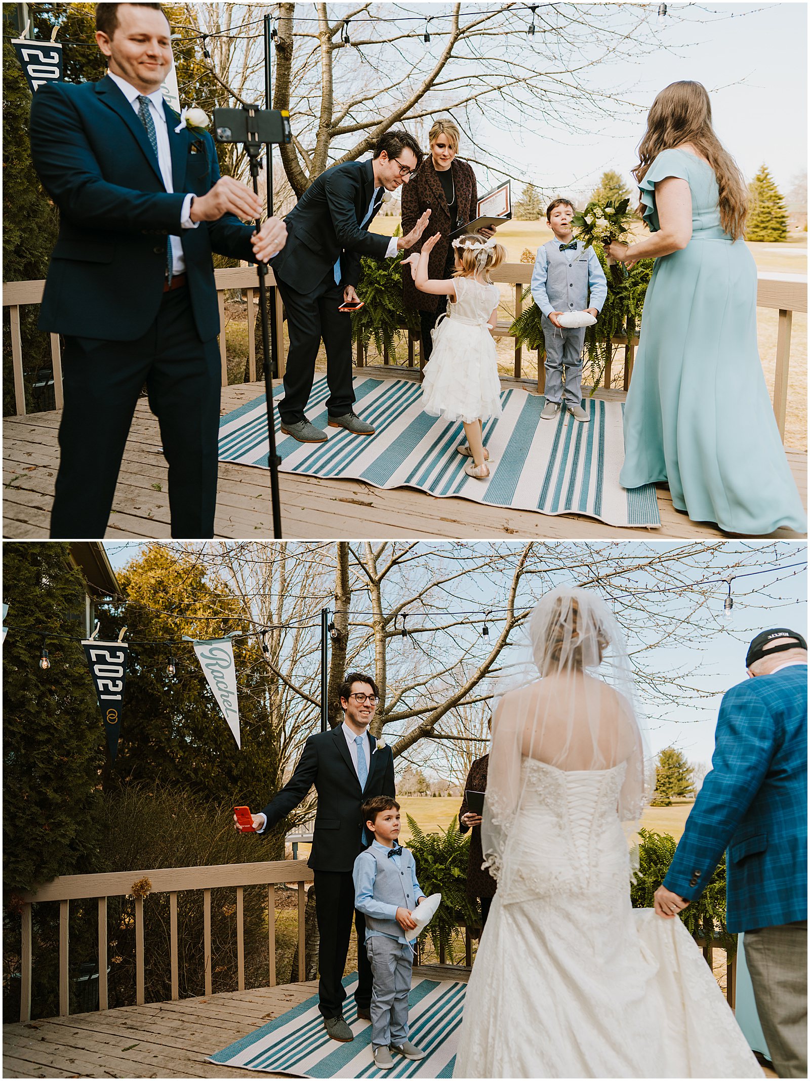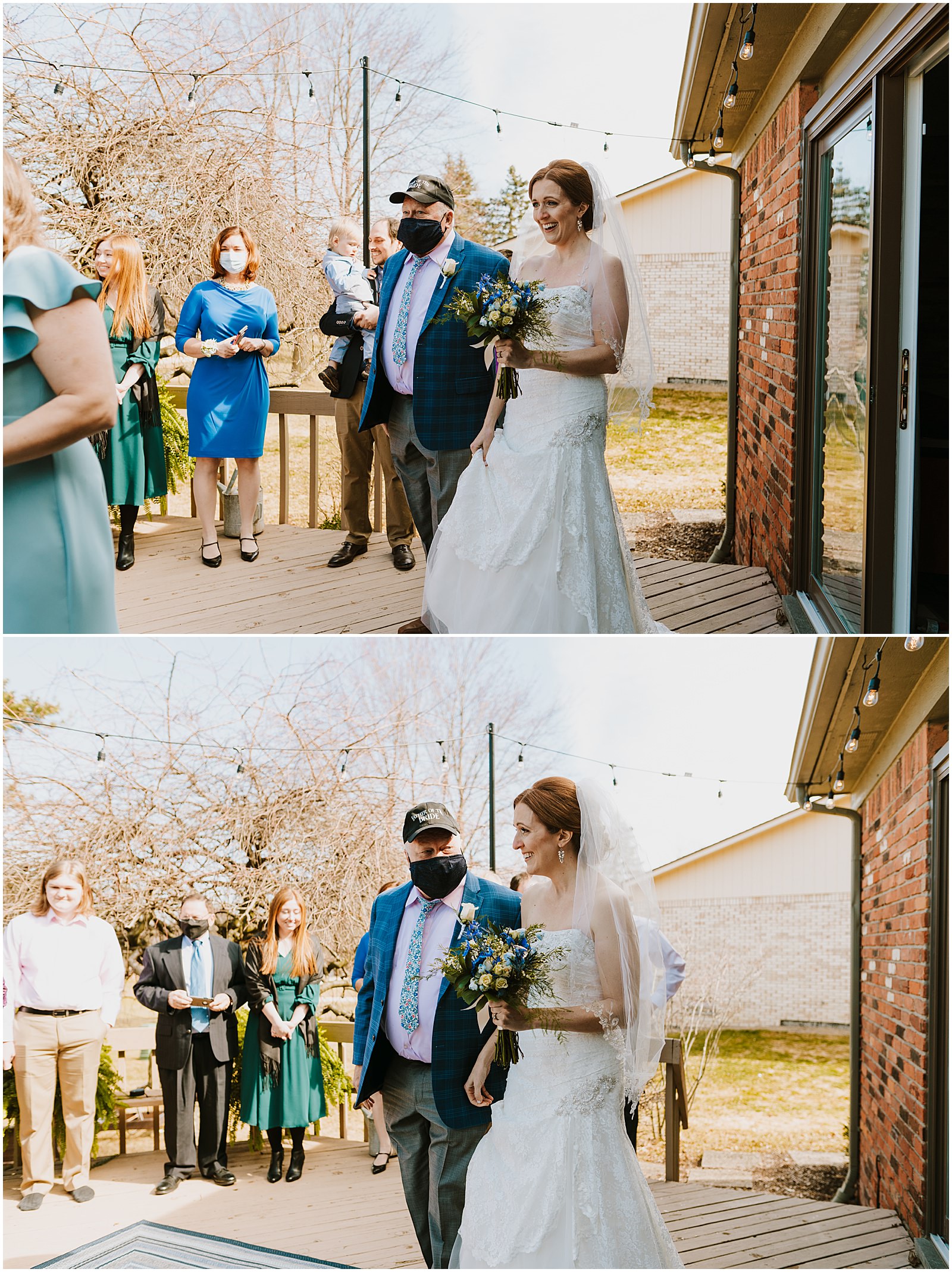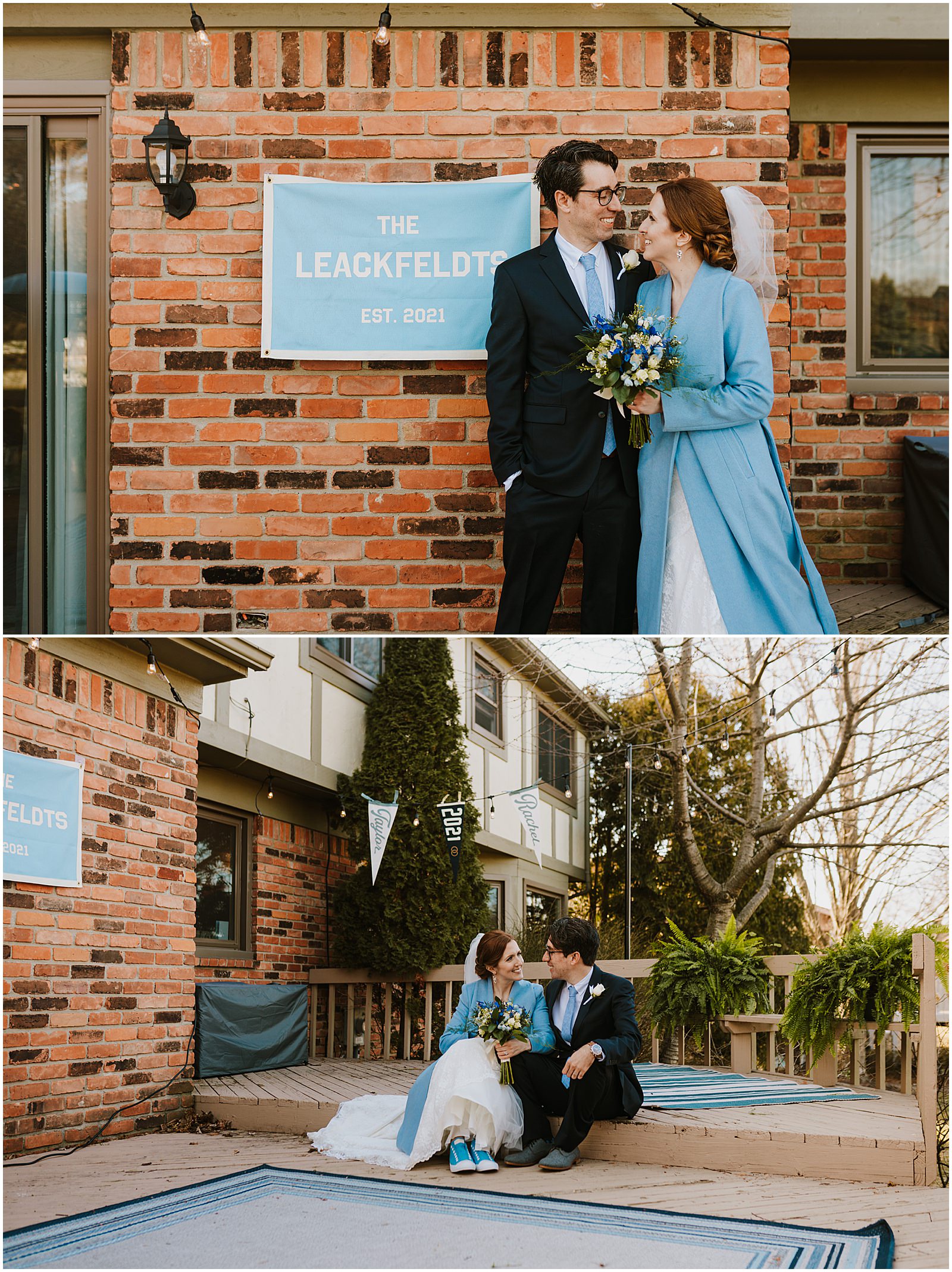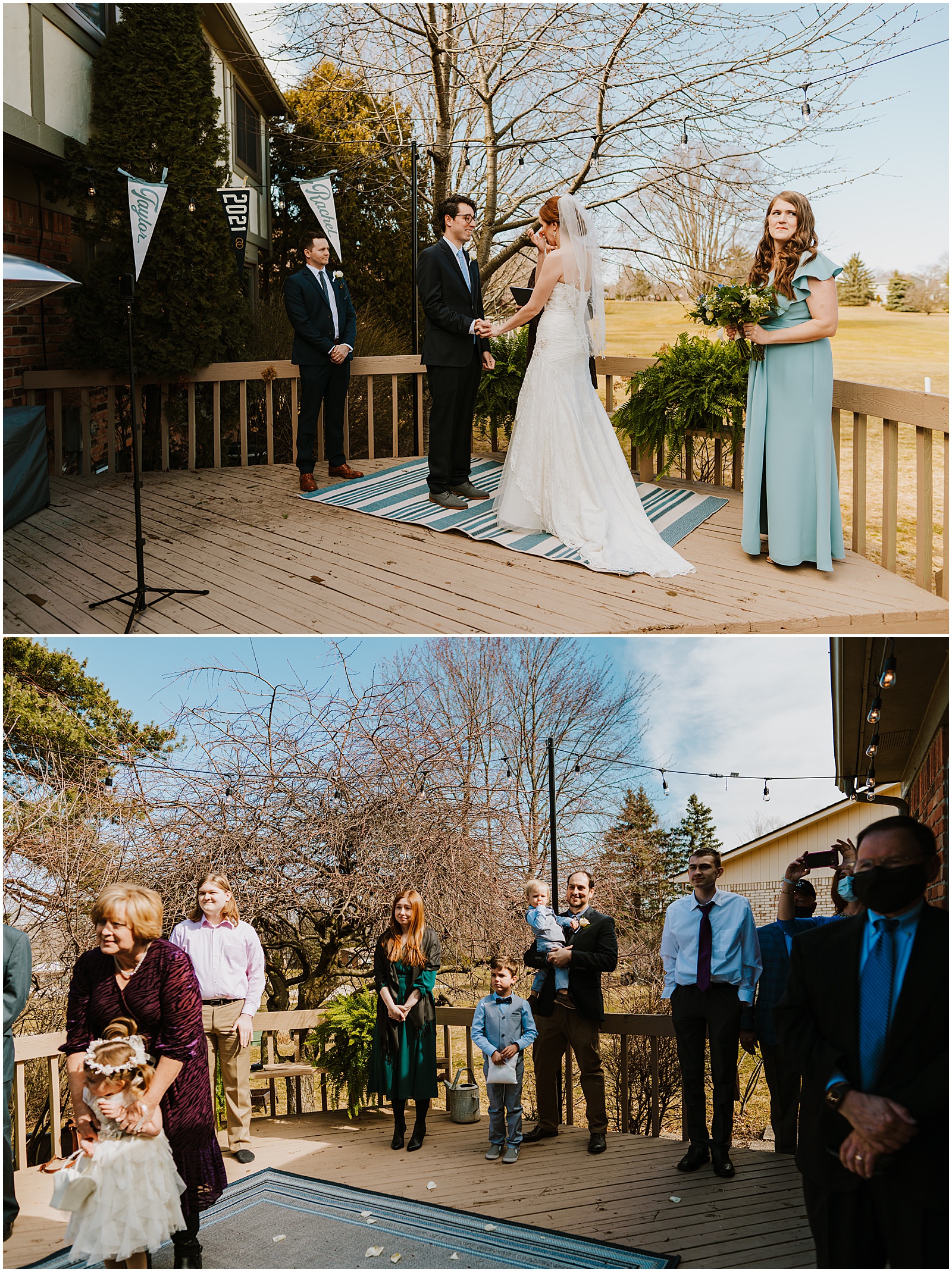 Their closest family were present for the vows, Taylor’s sister Paige married them. Others tuned in via Zoom. It was a very pandemic wedding, but honestly, I think a small spring backyard wedding felt perfect for them. They laughed, they cried, they smiled, it was grand. I know it wasn’t what they planned but something just felt very right about it. I thought that about a lot of pandemic weddings. We really got back to basics…back to the meat of what weddings are truly about. How special it was to witness their commitment to each other literally in their home surrounded by those dearest to them. I don’t take these things lightly at all.