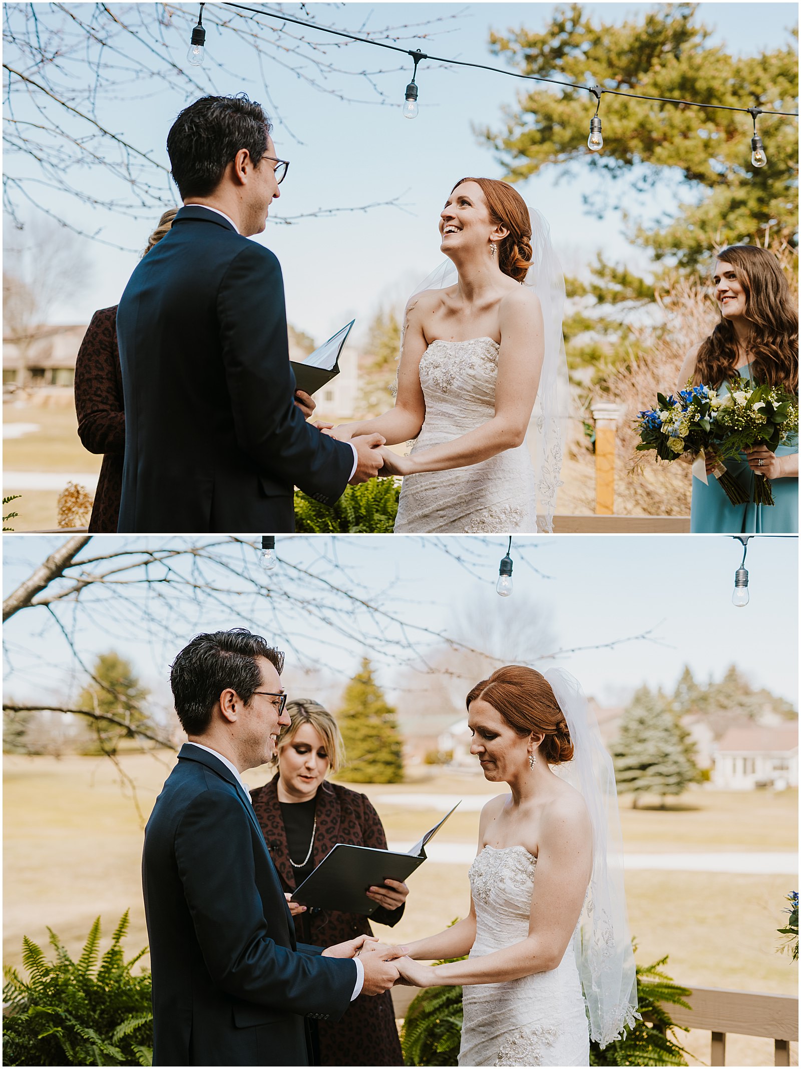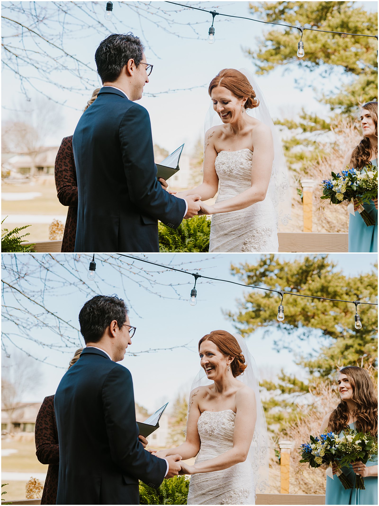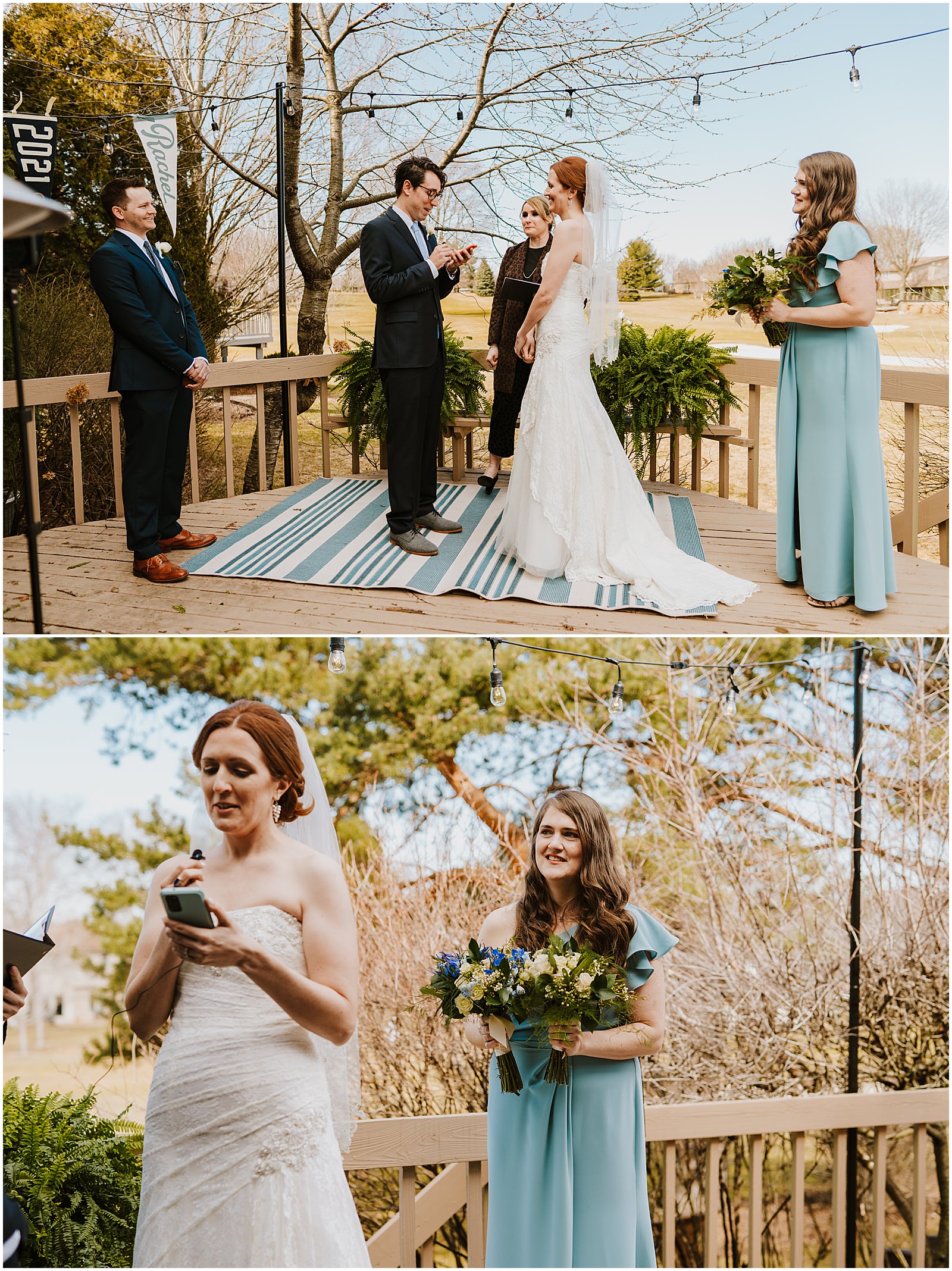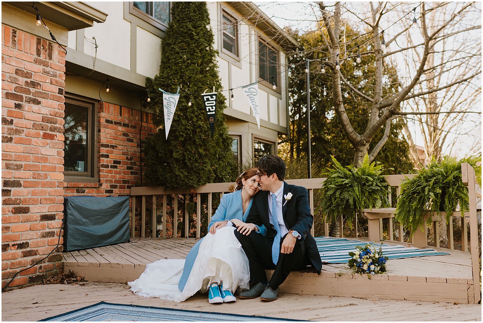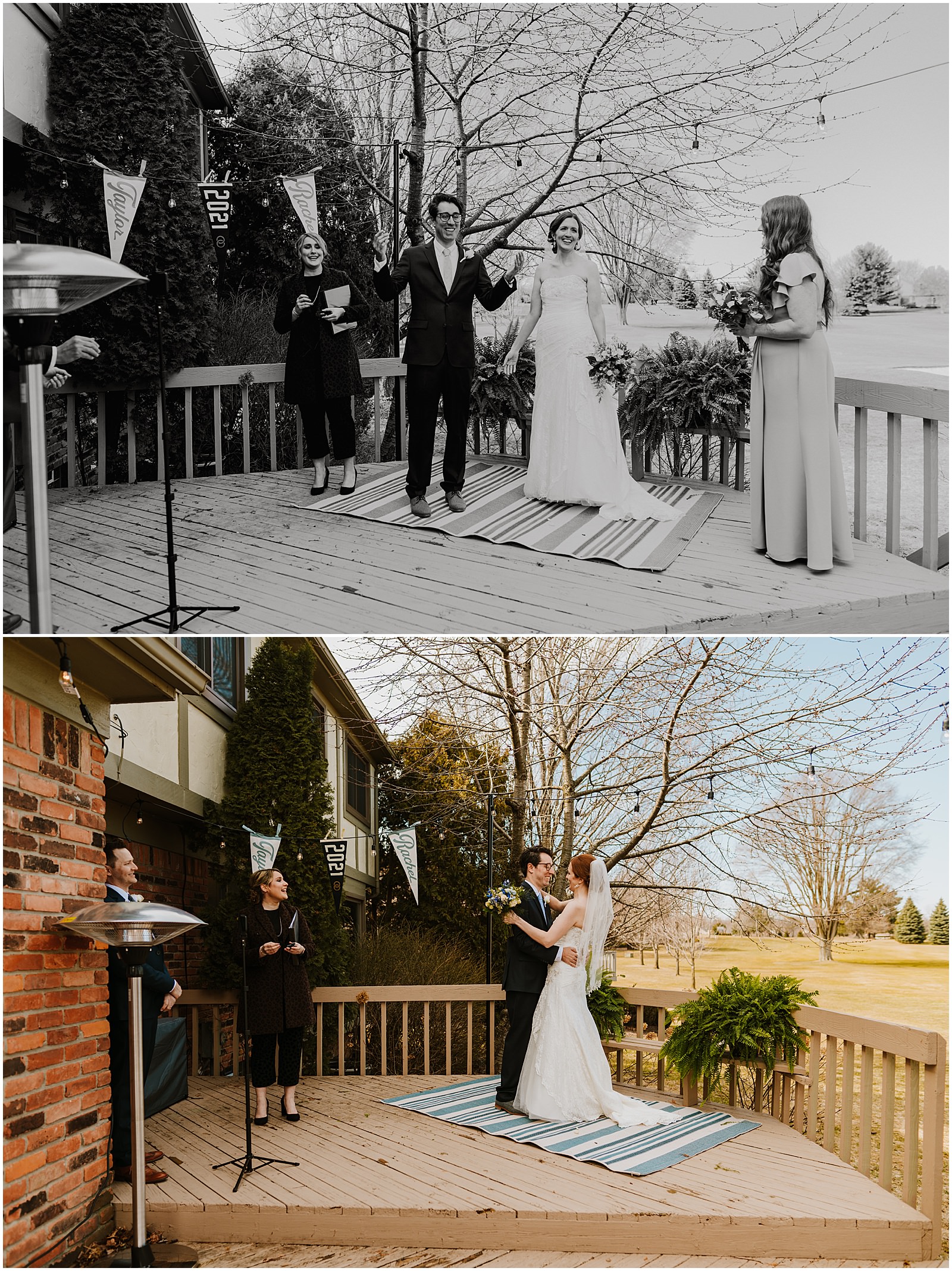 Their closest family were present for the vows, Taylor’s sister Paige married them. Others tuned in via Zoom. It was a very pandemic wedding, but honestly, I think a small spring backyard wedding felt perfect for them. They laughed, they cried, they smiled, it was grand. I know it wasn’t what they planned but something just felt very right about it. I thought that about a lot of pandemic weddings. We really got back to basics…back to the meat of what weddings are truly about. How special it was to witness their commitment to each other literally in their home surrounded by those dearest to them. I don’t take these things lightly at all.