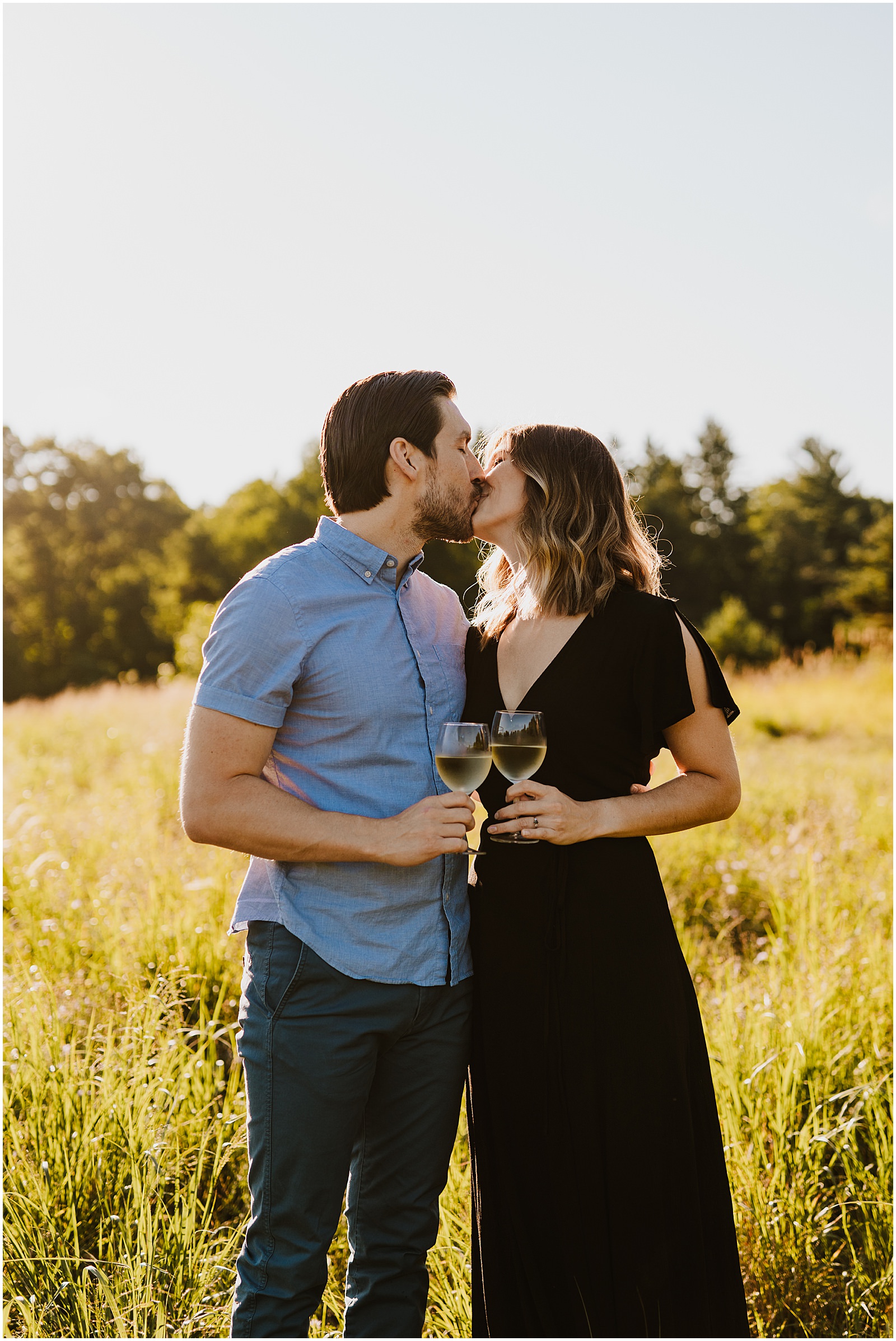 A sunset Stony Creek engagement session is perfect for summer engagements. Here’s another summer Stony Creek engagement session in case you’re curious. The large fields and pine covered trail at Stony Creek is a beautiful backdrop in any season, but in summer, it just feels so lush and green. It’s a popular spot for photos for a reason.