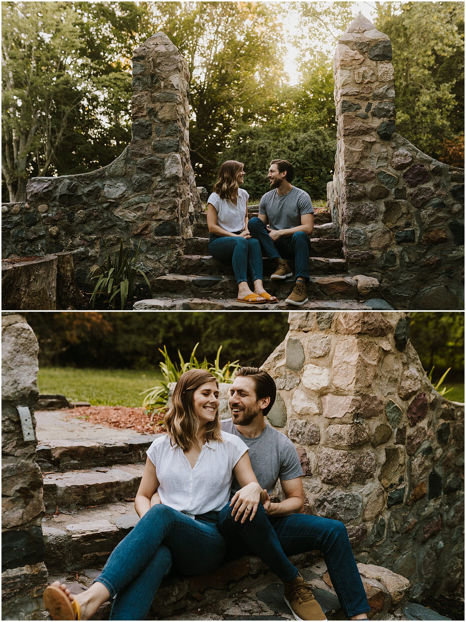 Lauren and Seth love the outdoors so a sunset Stony Creek engagement session was perfect for them! The first time we scheduled their engagement session, the weather forecast was cloudy, but still fine for photos. However, after shooting for about thirty minutes, it started to RAIN! Out of nowhere, with 20 percent chance on the forecast! So we decided to postpone the session and try again in a week or so. Good thing because we got the most incredible sunset for their session!