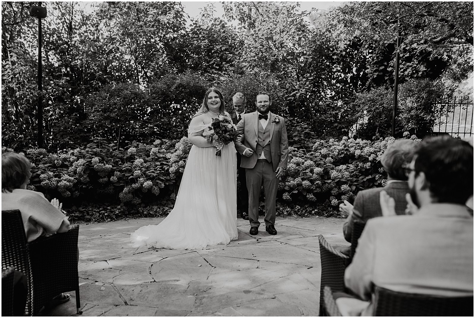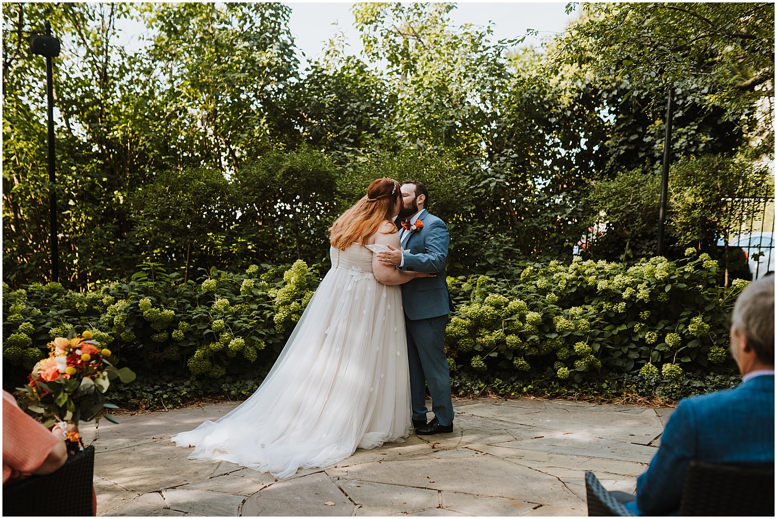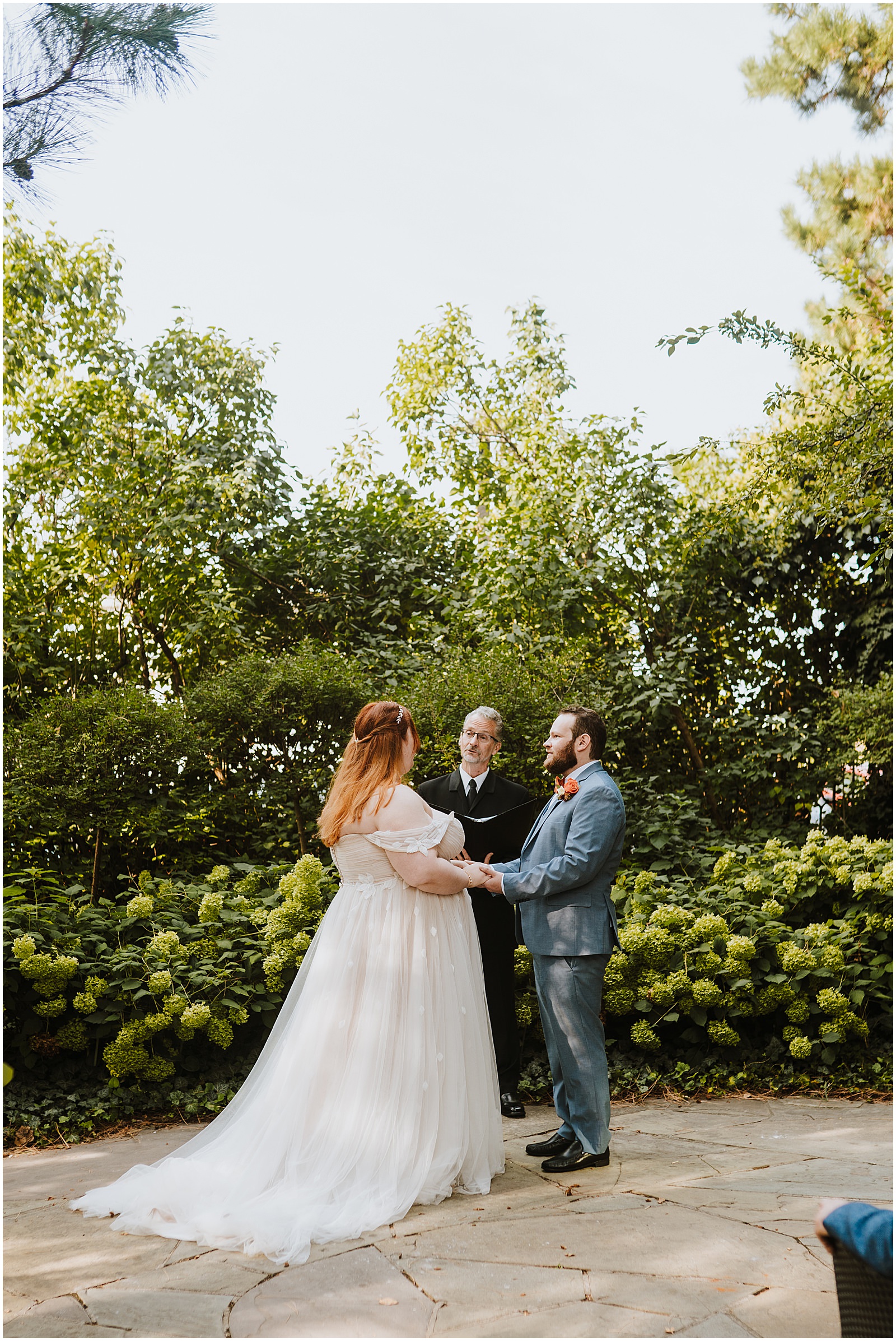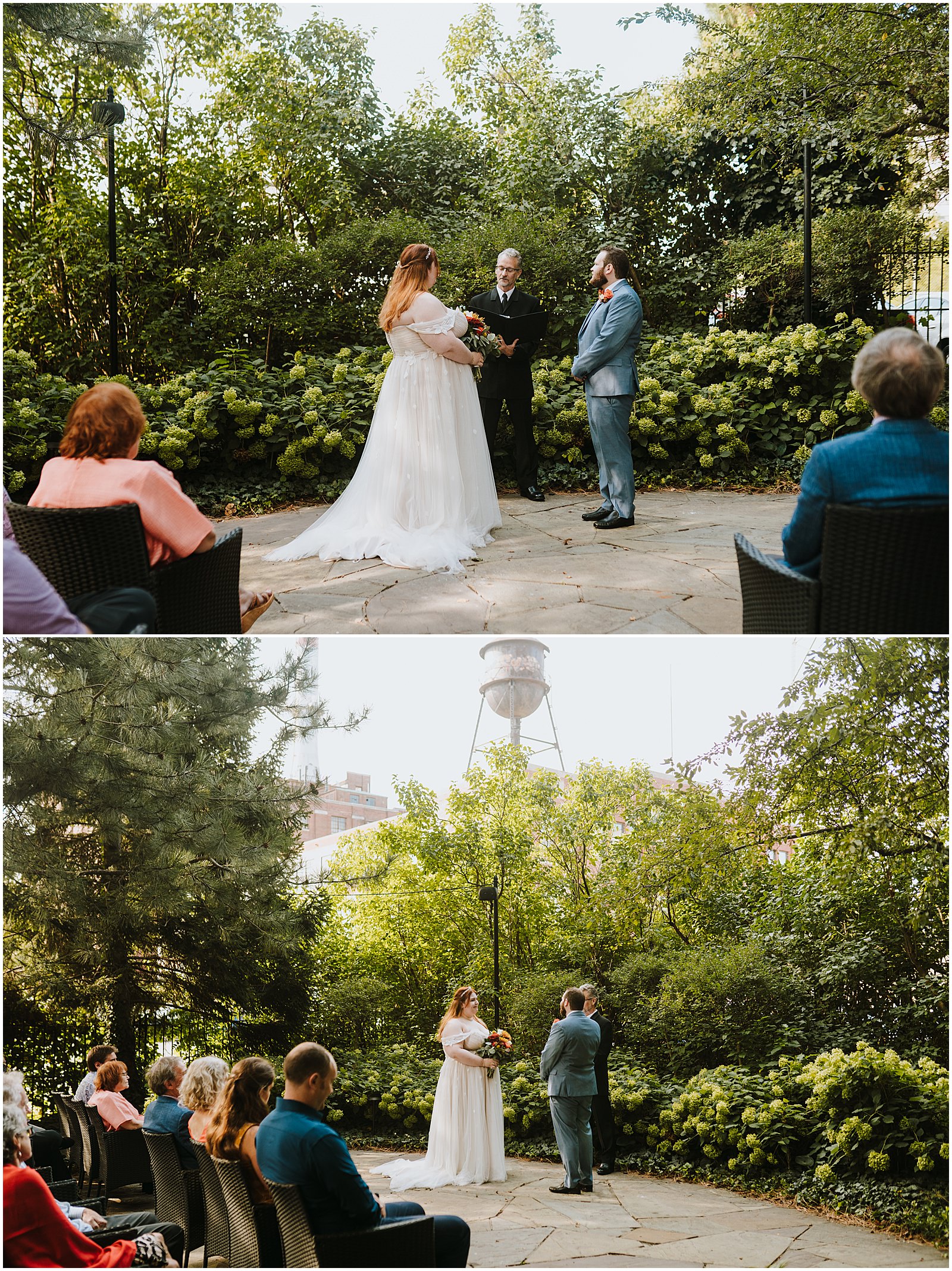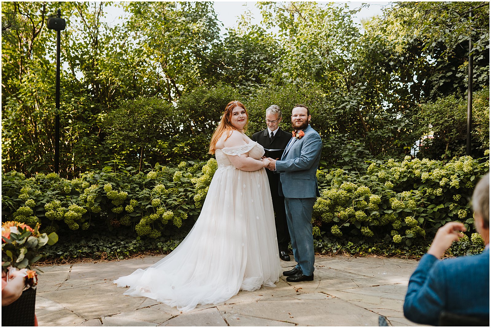 Shannon and Sam got ready separately and then had a private first look on the stairs of The Whitney. They read private vows to each other and then we had a portrait session both inside and out in the garden. Their ceremony took place in The Whitney’s garden, which is a gorgeous spot tucked into the back of the home.