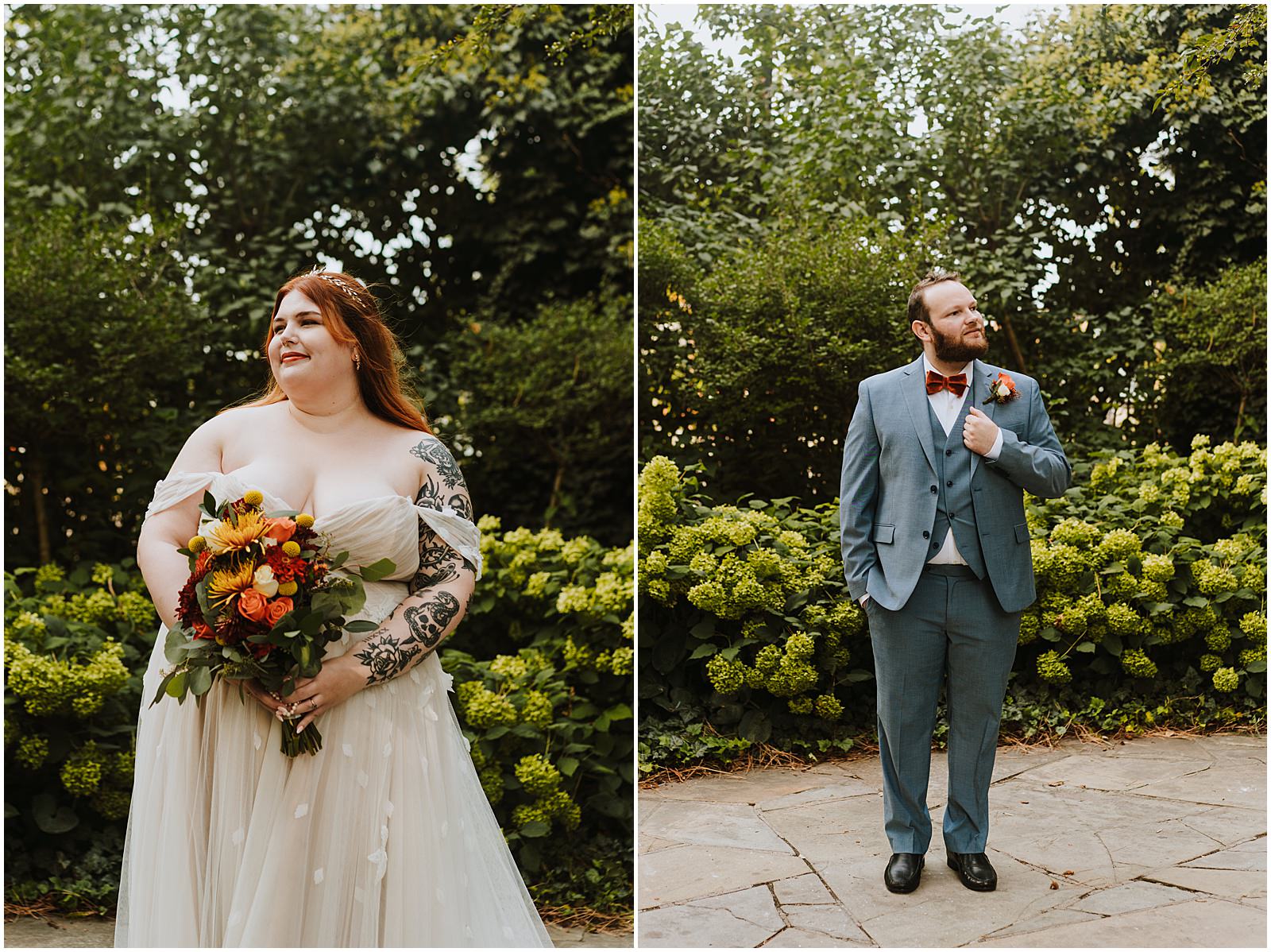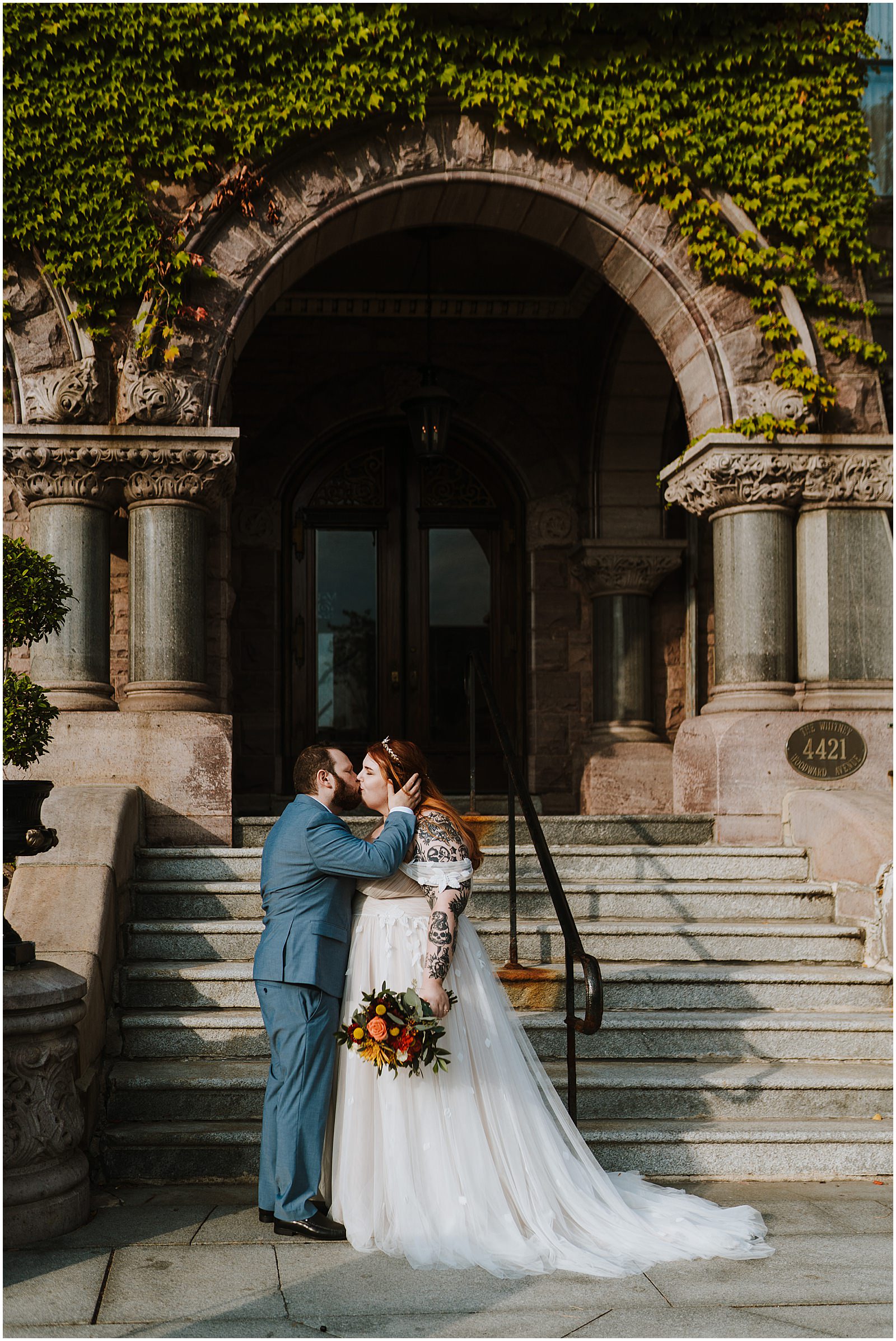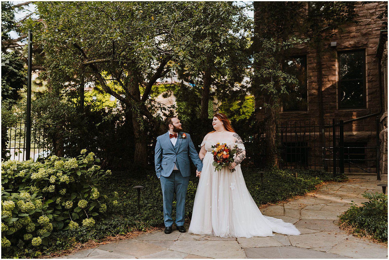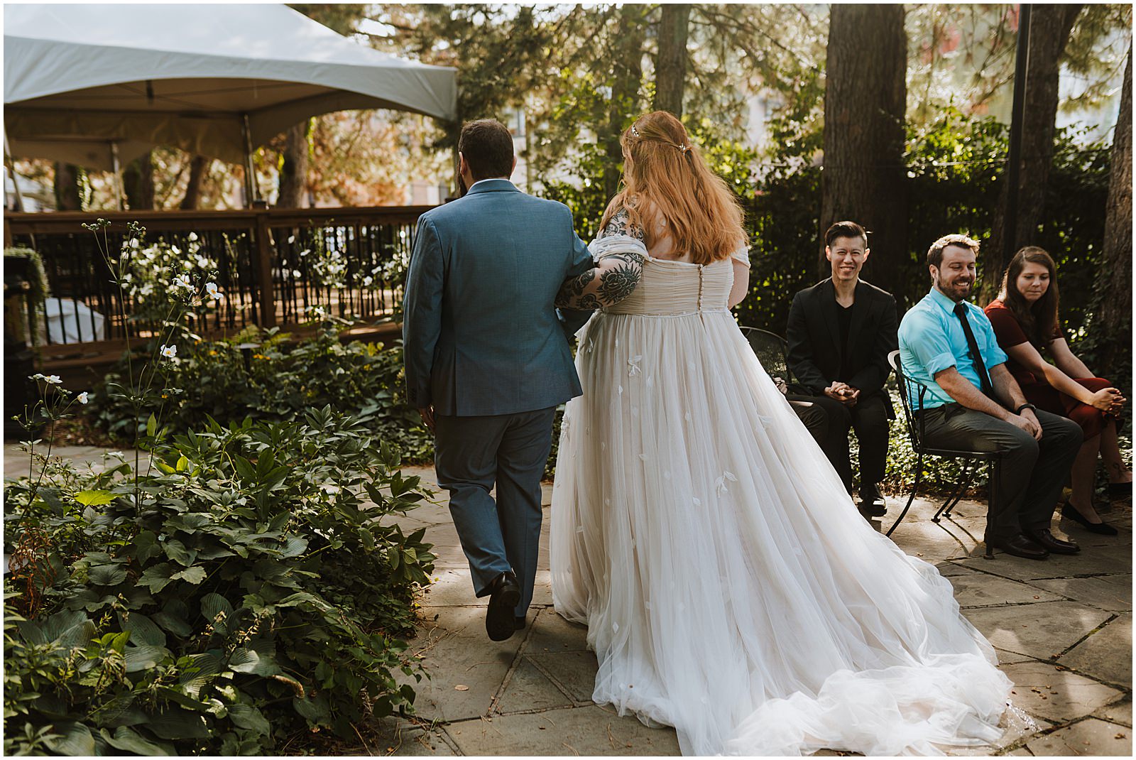 Shannon and Sam got ready separately and then had a private first look on the stairs of The Whitney. They read private vows to each other and then we had a portrait session both inside and out in the garden. Their ceremony took place in The Whitney’s garden, which is a gorgeous spot tucked into the back of the home.