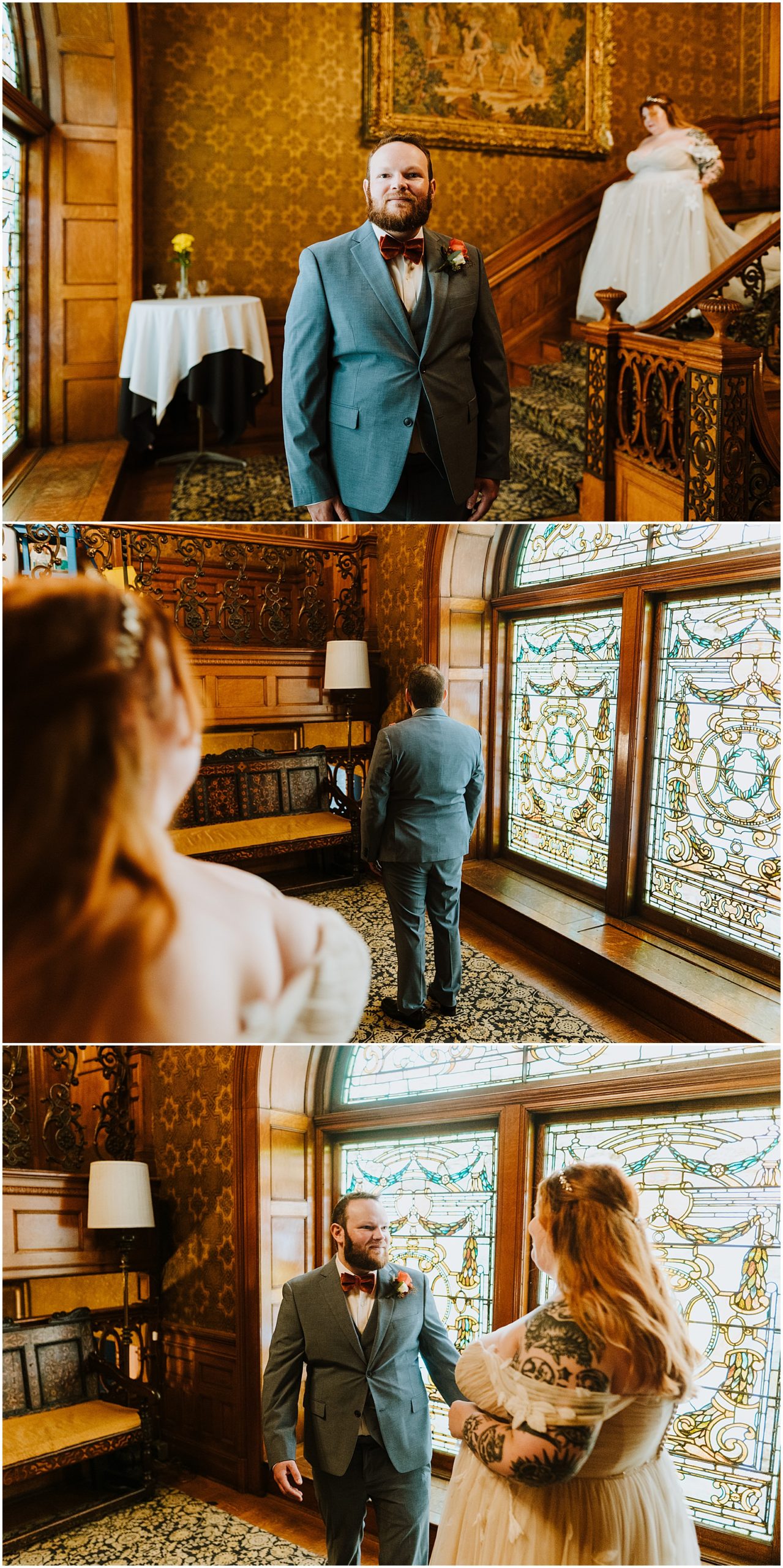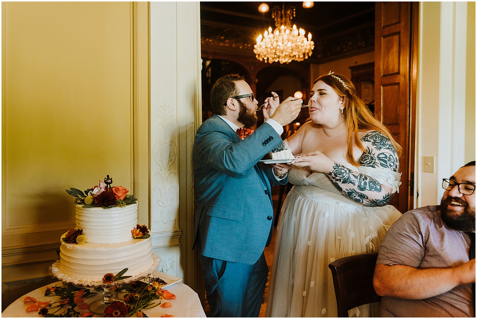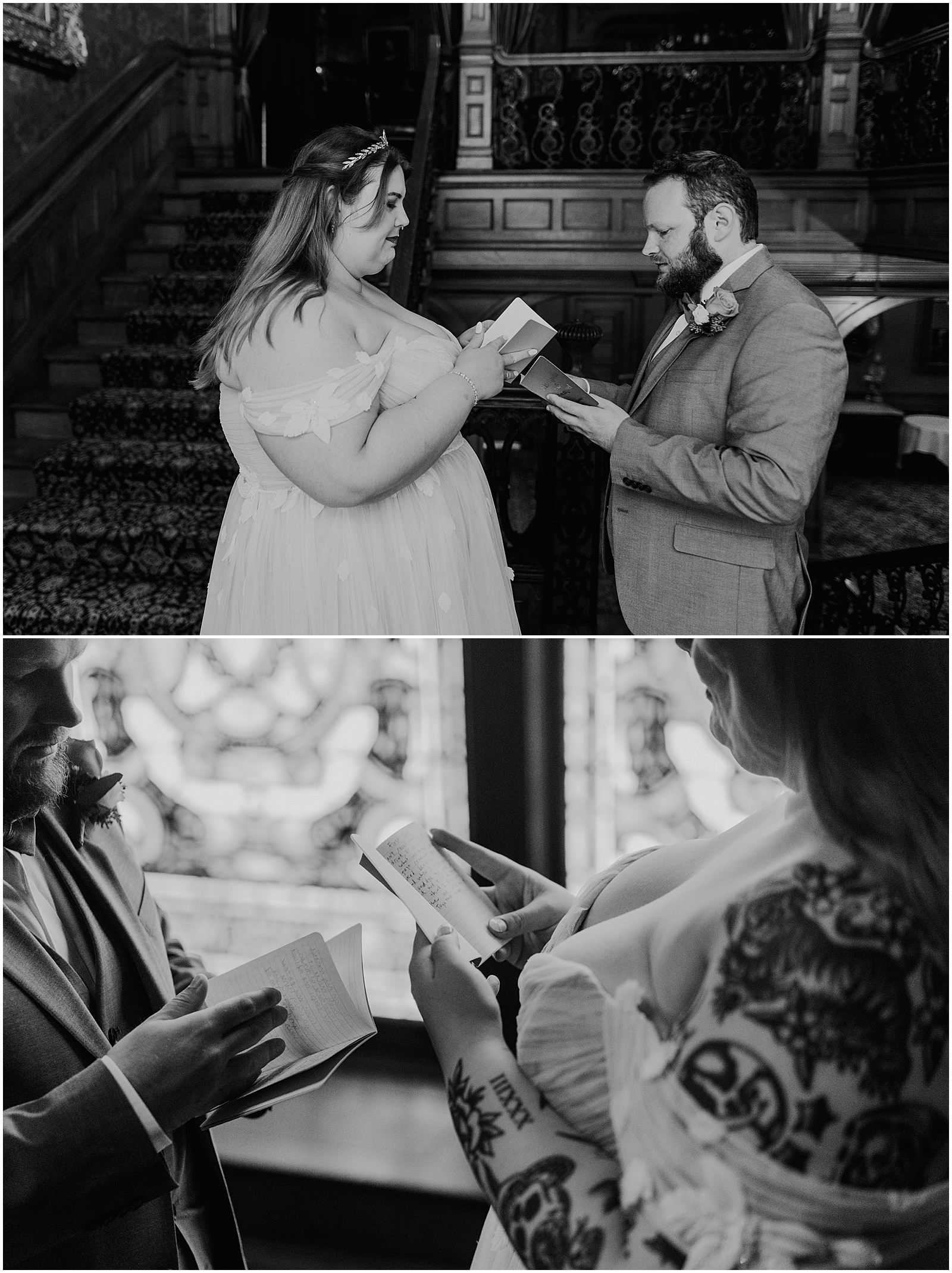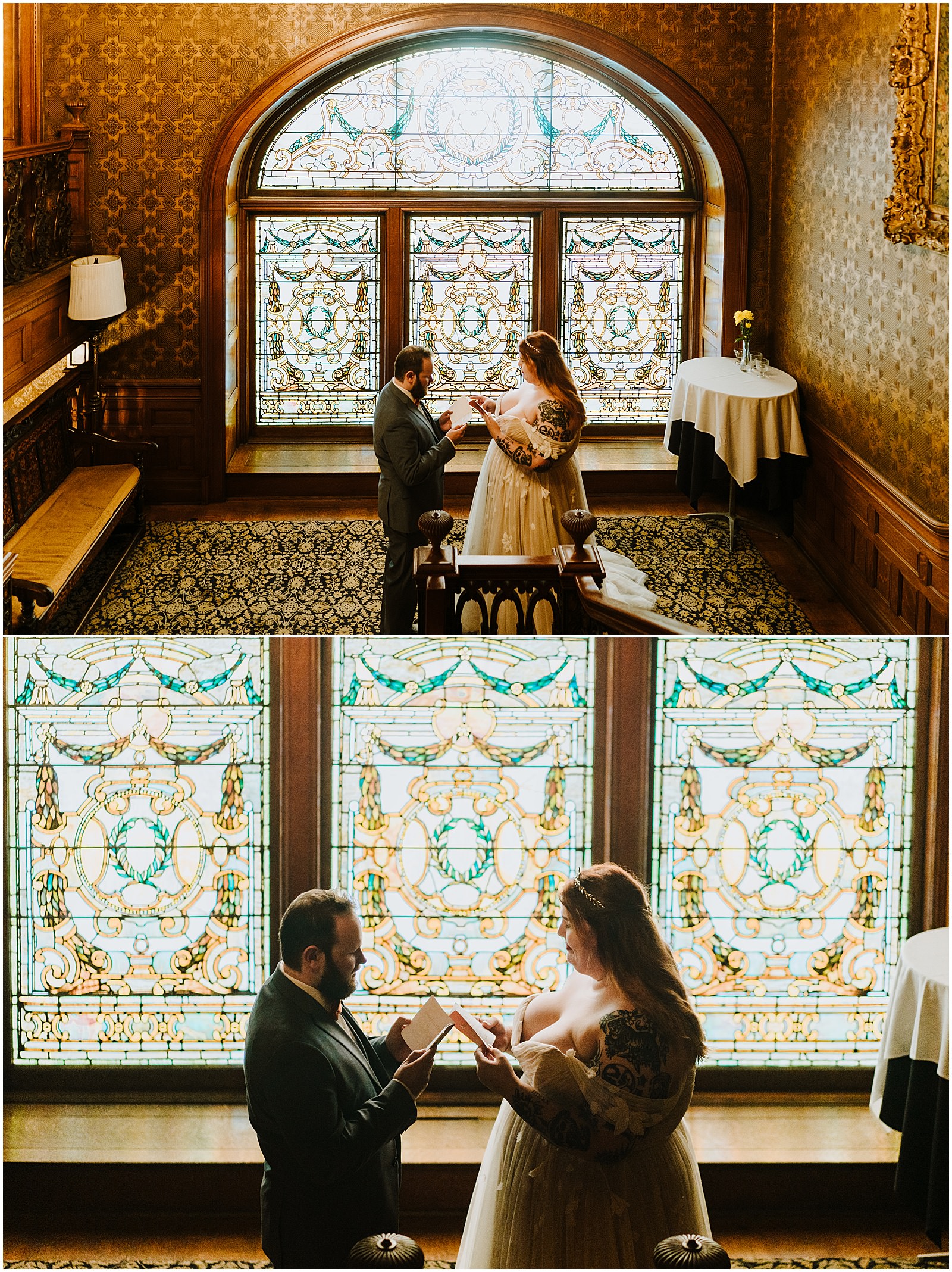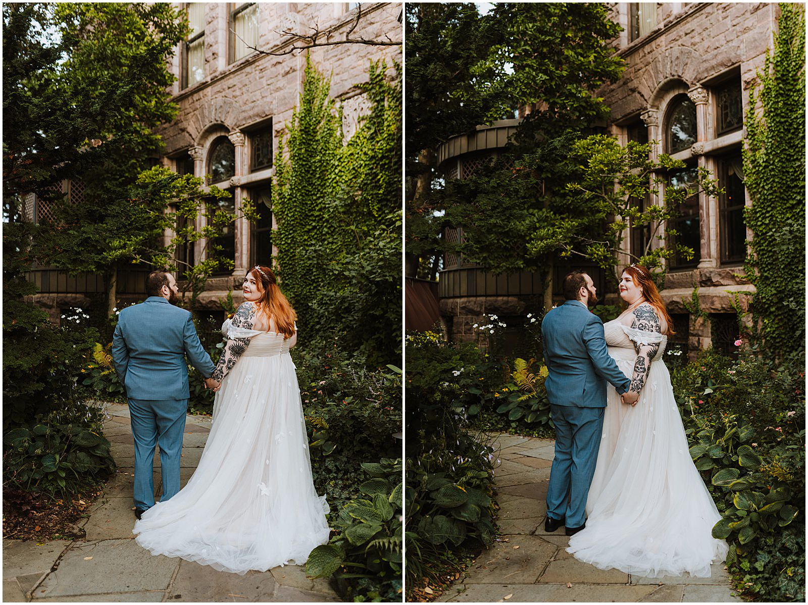 Shannon and Sam got ready separately and then had a private first look on the stairs of The Whitney. They read private vows to each other and then we had a portrait session both inside and out in the garden. Their ceremony took place in The Whitney’s garden, which is a gorgeous spot tucked into the back of the home.
