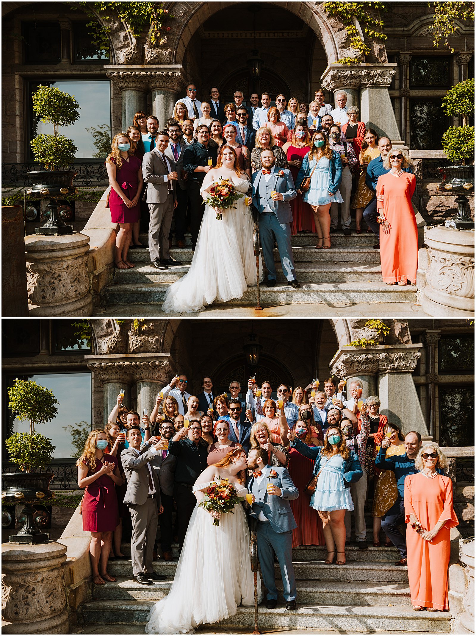 One of the things I love to do at an intimate The Whitney wedding is to take a photo of everyone present. When you have a smaller gathering, it’s easier to make this happen. When you have lovely steps like The Whitney does, it’s even easier to get done!